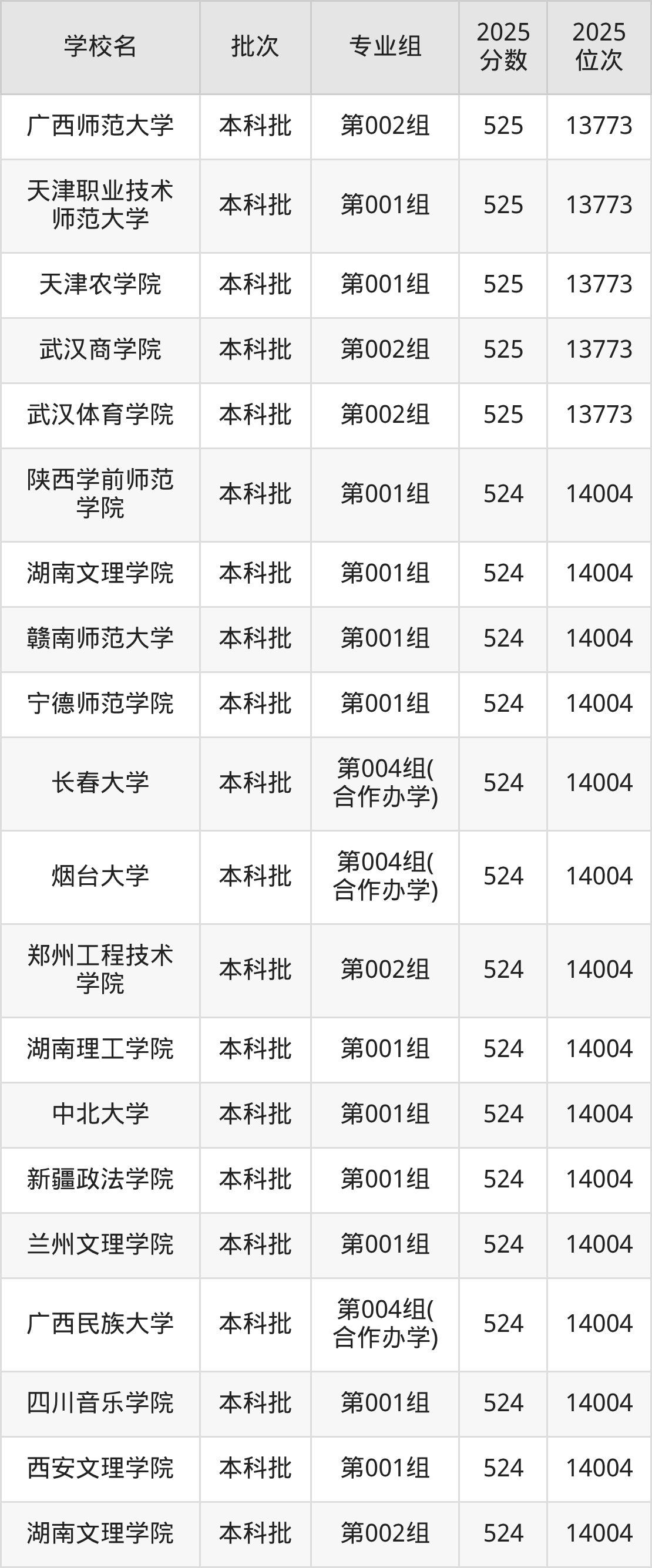 这些都是2026年高考历史类13289名~13534名考生可以报考的大学,更多学校名单如下表所示: