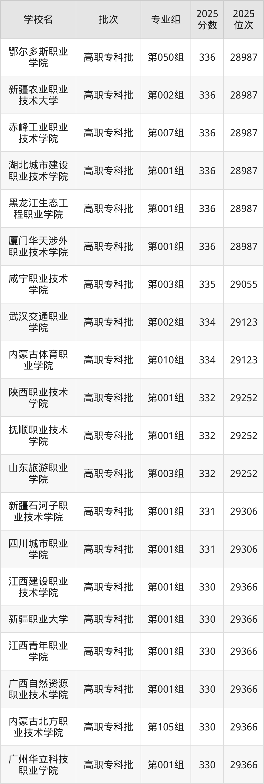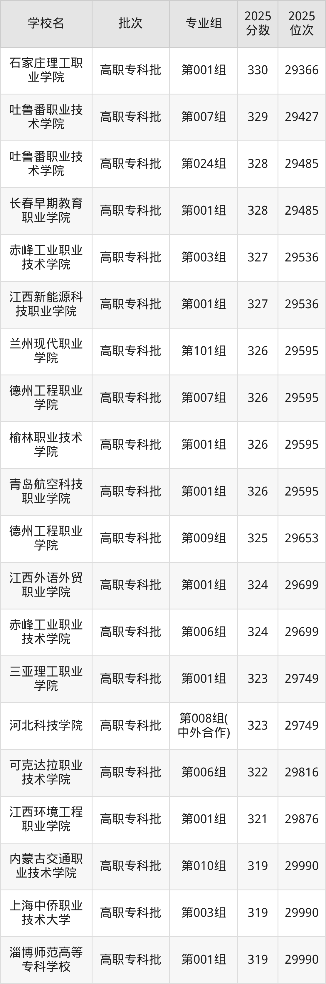 2025年内蒙古高考历史类327分(29486名~29536名)能上的大学有赤峰工业职业技术学院第003组、江西新能源科技职业学院第001组。