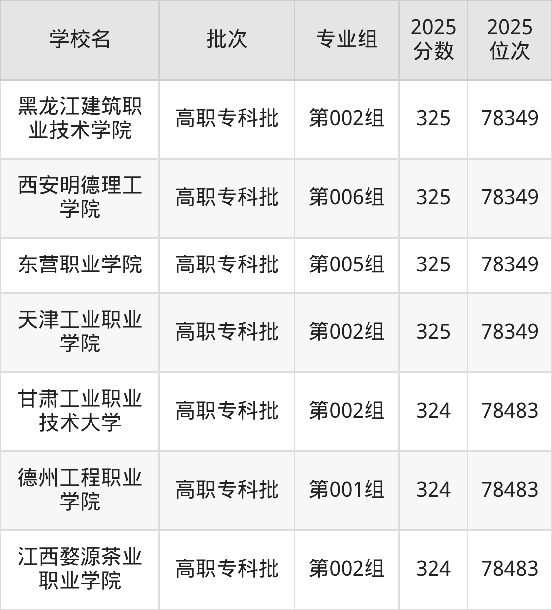 2025年内蒙古高考物理类327分(77935名~78083名)能上的大学有山东交通职业学院第001组、厦门华天涉外职业技术学院第002组、榆林能源科技职业学院第102组。