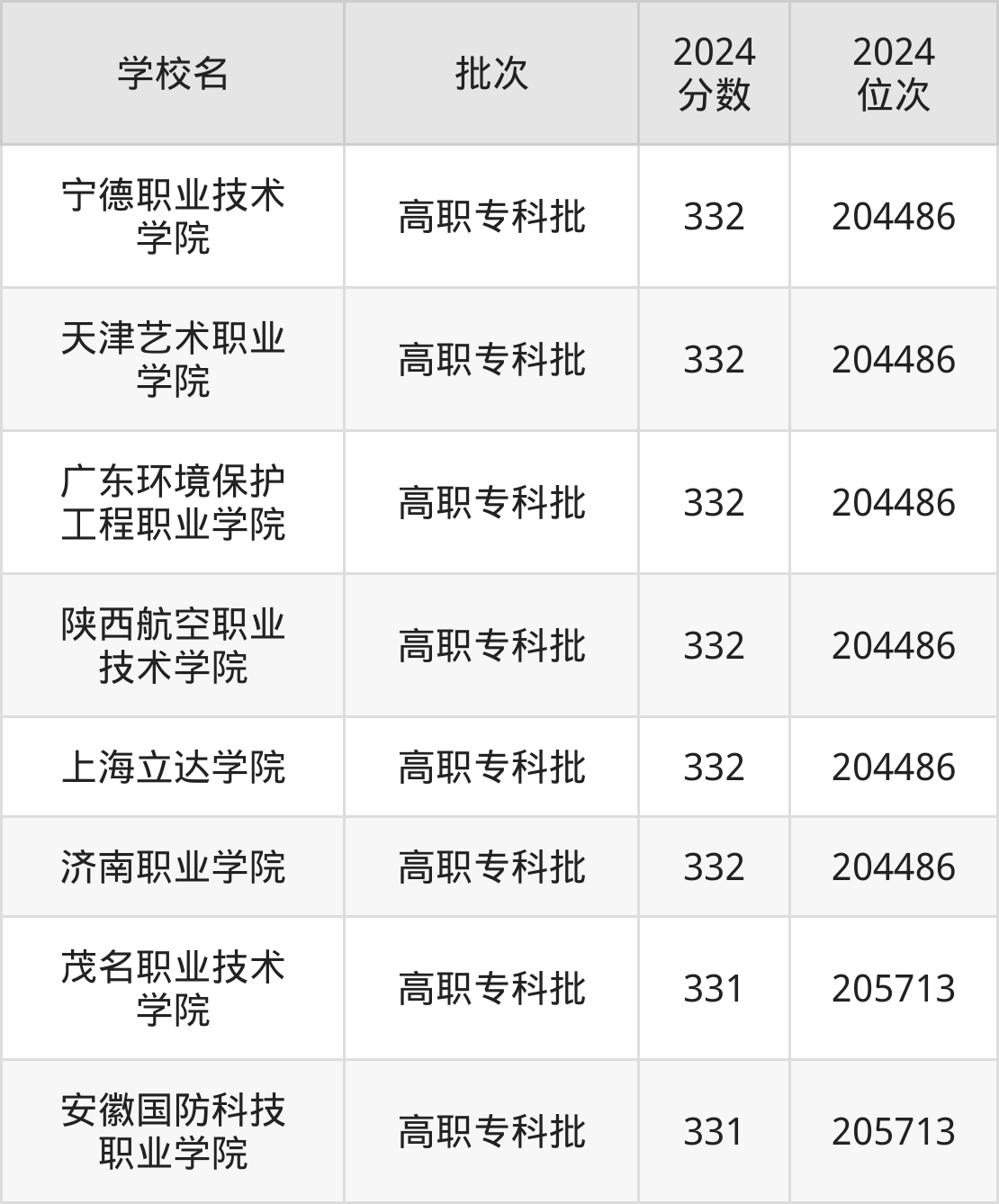 2024年河南高考文科331分(204487名~205713名)能上的大学有安徽国防科技职业学院、茂名职业技术学院。