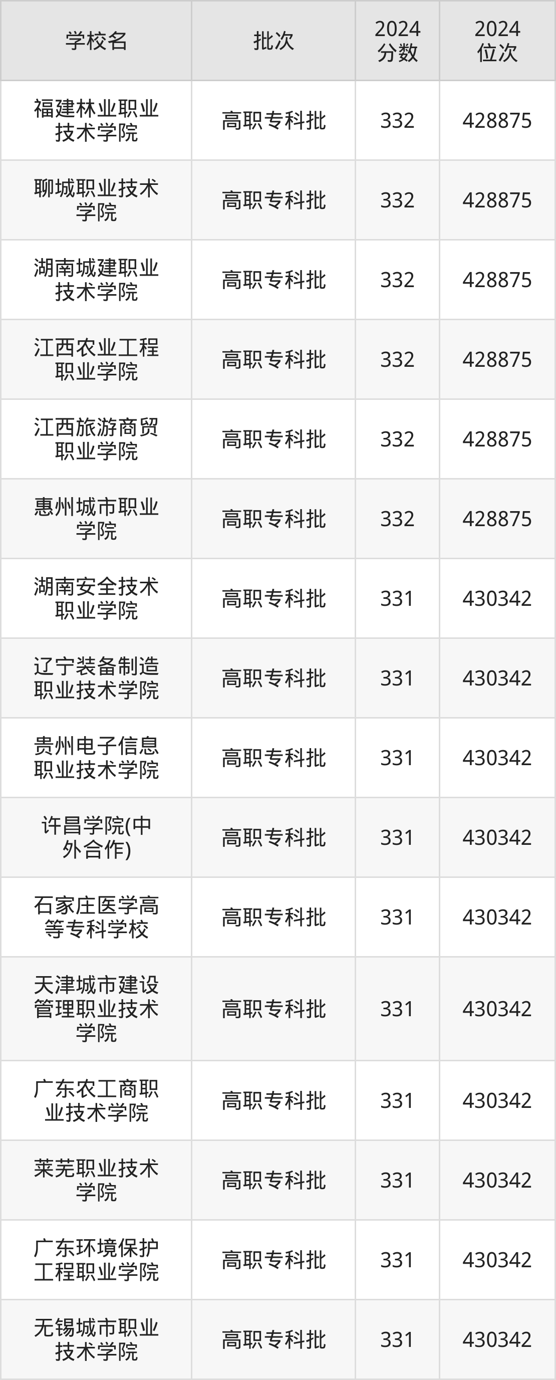 2024年河南高考理科331分(428877名~430343名)能上的大学有无锡城市职业技术学院、广东环境保护工程职业学院、莱芜职业技术学院、广东农工商职业技术学院等。