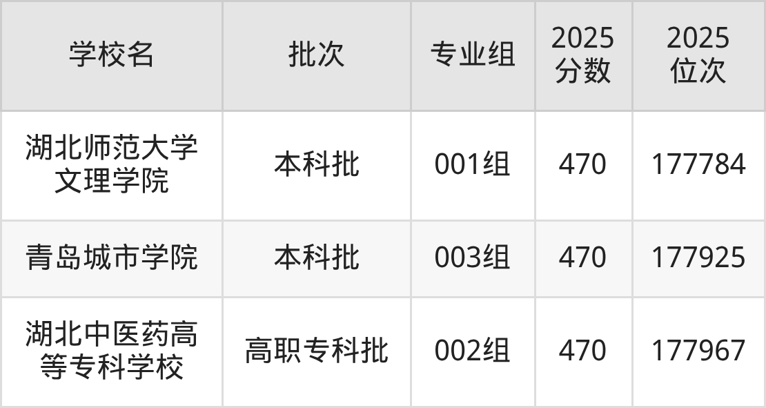 这些都是2026年高考物理类176183名~177597名考生可以报考的大学,更多学校名单如下表所示: