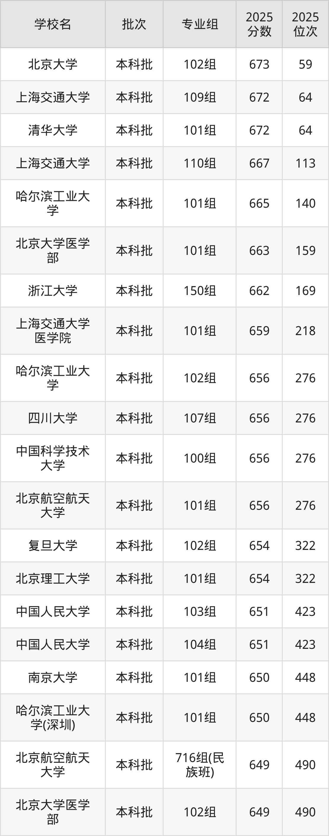 2025年广西高考物理类663分(152名~159名)能上的大学有北京大学医学部101组。