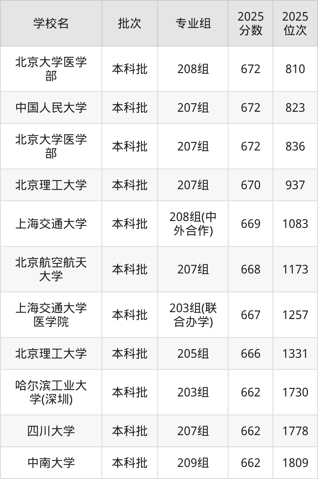 另外录取位次低于该区间(较稳妥)的有哈尔滨工业大学(深圳)203组(1730名)、四川大学207组(1778名)等;录取位次高于该区间(可冲)的有上海交通大学医学院203组(联合办学)(1257名)、北京航空航天大学207组(1173名)等。