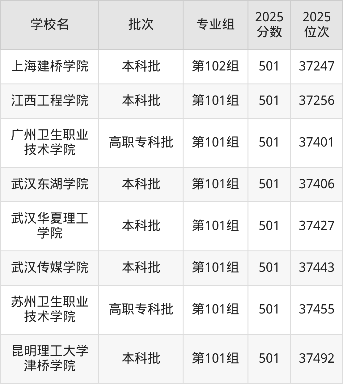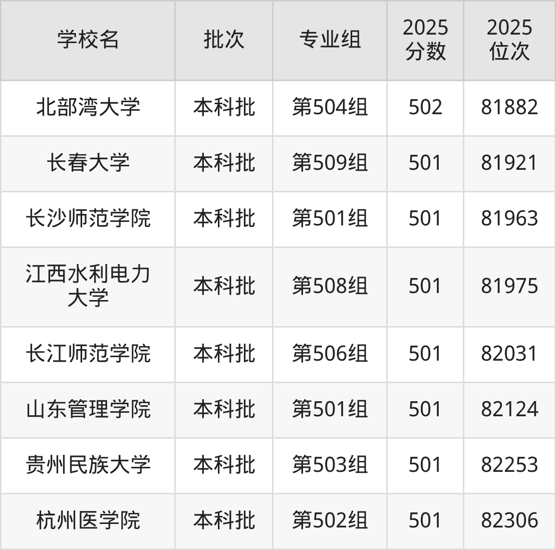 2025年江西高考物理类502分(80685名~81906名)能上的大学有河北地质大学第501组、山西医科大学第506组、长治医学院第503组、大连民族大学第561组(国家专项)等。