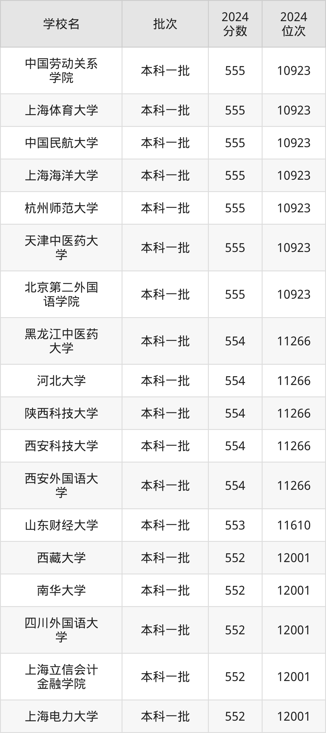 这些都是2025年高考文科11267名~11610名考生可以报考的大学,更多学校名单如下表所示: