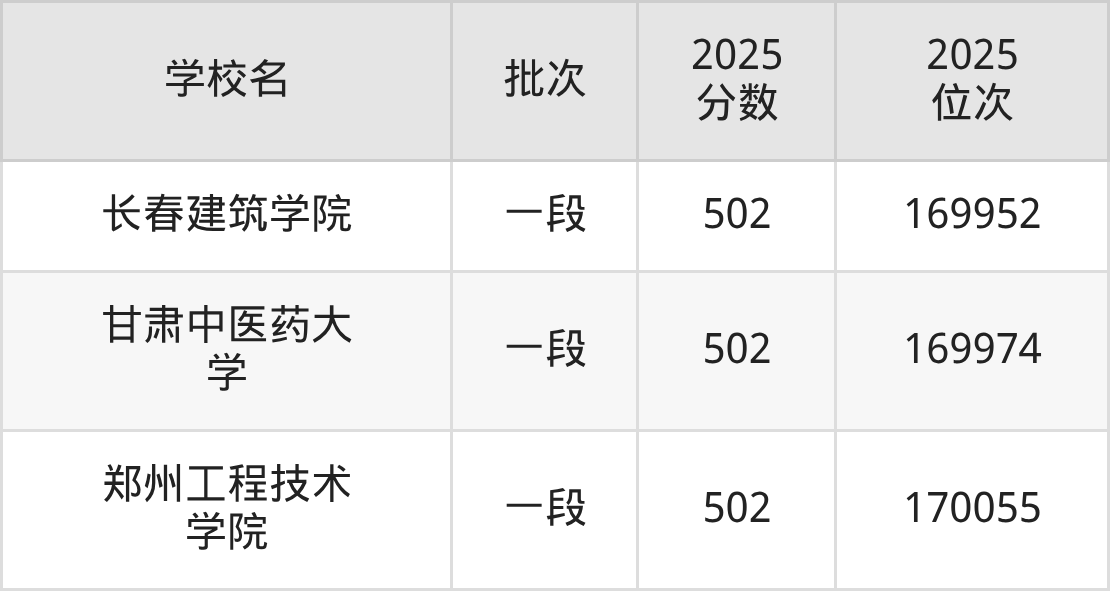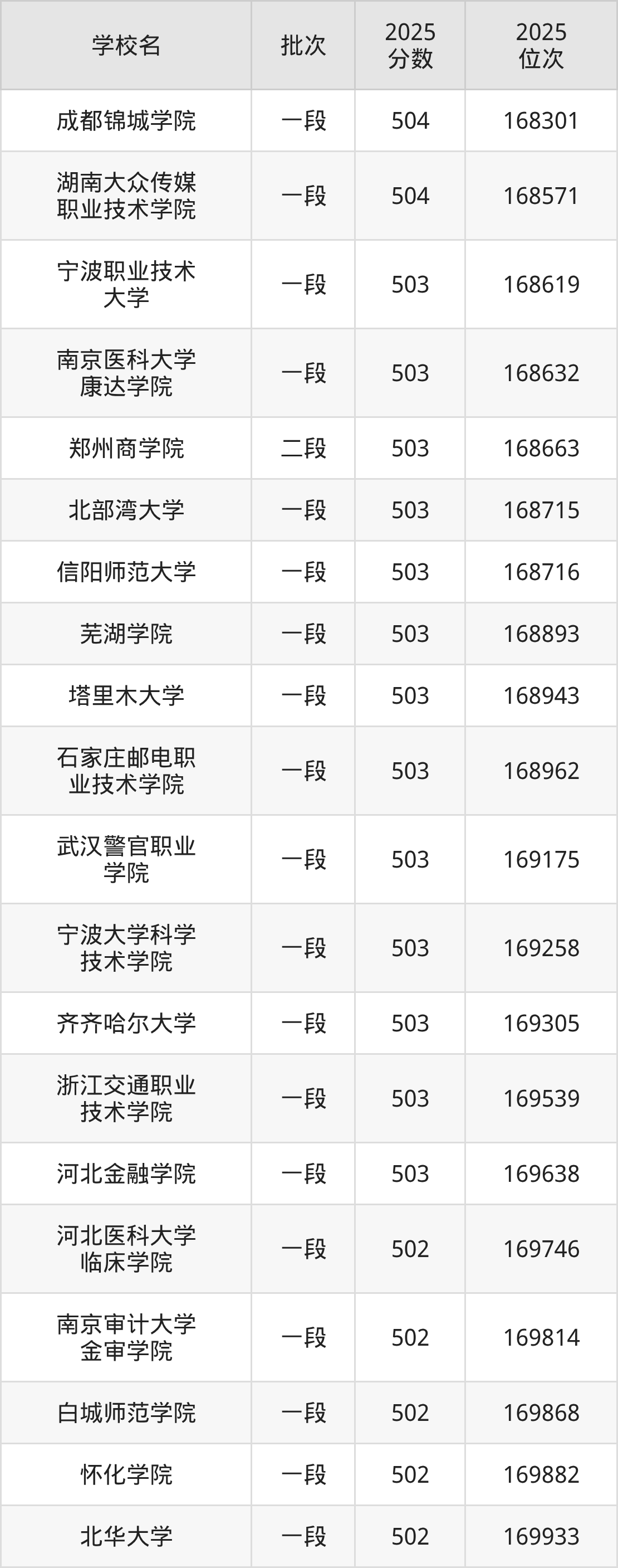 这些都是2026年高考168594名~169717名考生可以报考的大学,更多学校名单如下表所示: