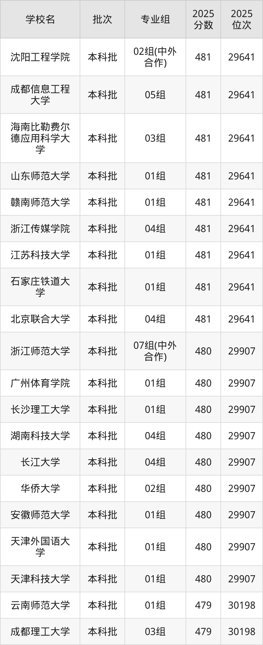 这些都是2026年高考29908名~30198名考生可以报考的大学,更多学校名单如下表所示: