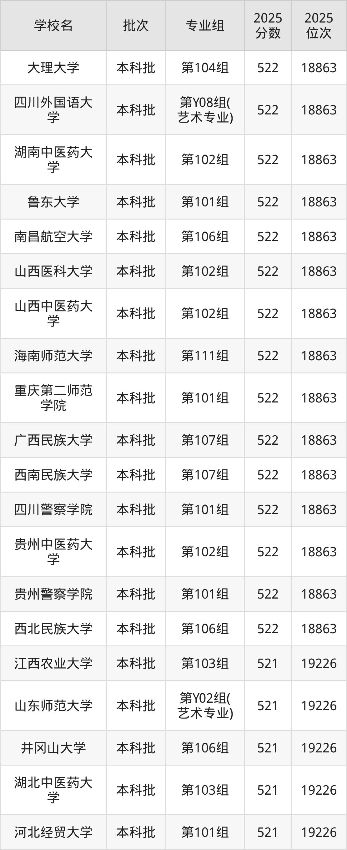 这些都是2026年高考历史类19227名~19582名考生可以报考的大学,更多学校名单如下表所示: