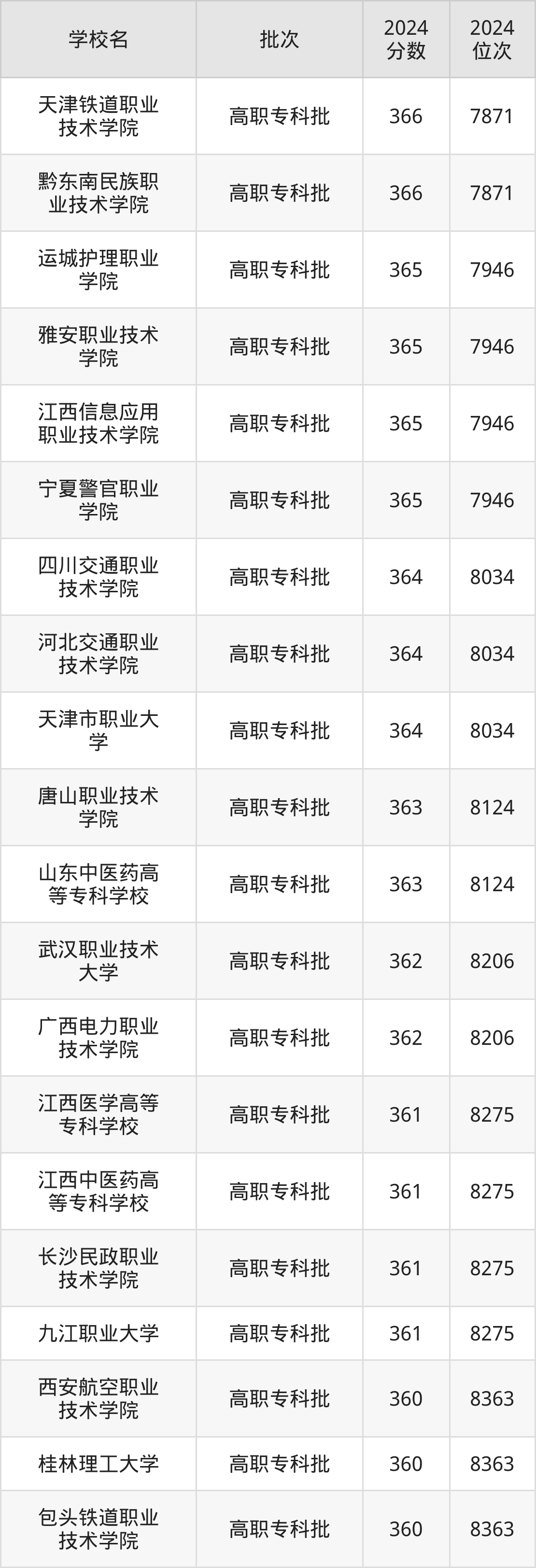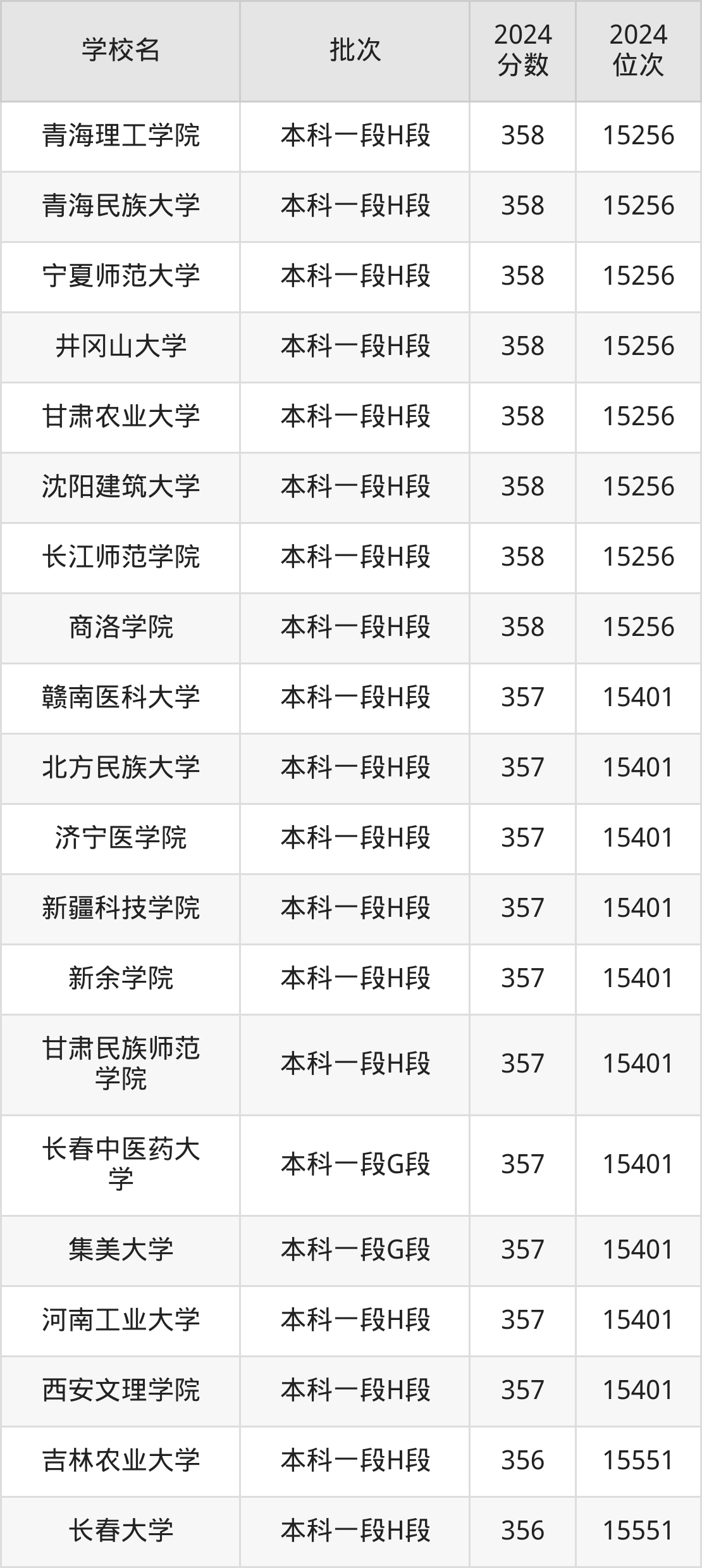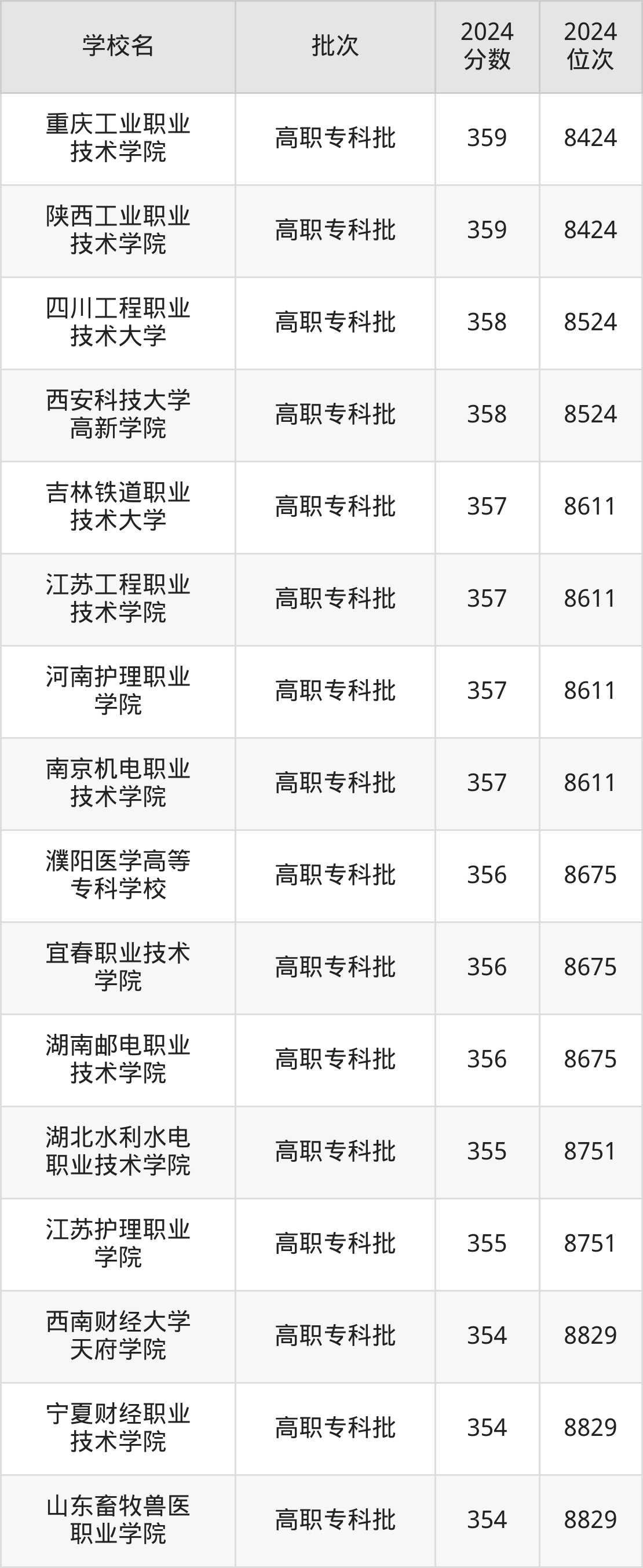 2024年青海高考文科359分(8364名~8424名)能上的大学有重庆工业职业技术学院、陕西工业职业技术学院。