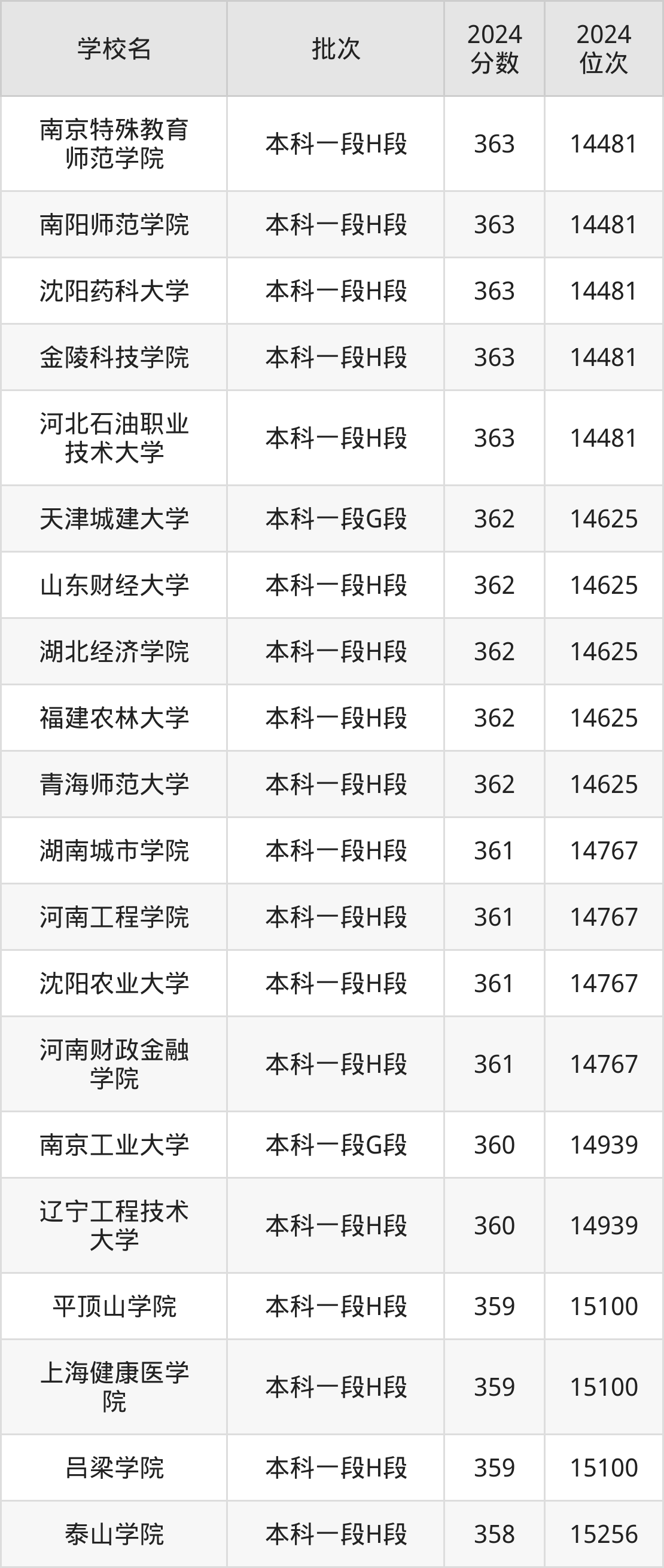 这些都是2025年高考文科8364名~8424名考生可以报考的大学,更多学校名单如下表所示: