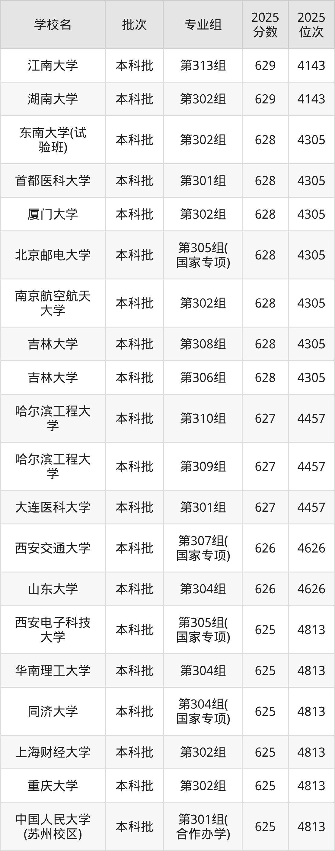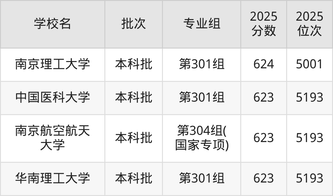 另外录取位次低于该区间(较稳妥)的有南京理工大学第301组(5001名)、南京航空航天大学第304组(国家专项)(5193名)等;录取位次高于该区间(可冲)的有山东大学第304组(4626名)、西安交通大学第307组(国家专项)(4626名)等。