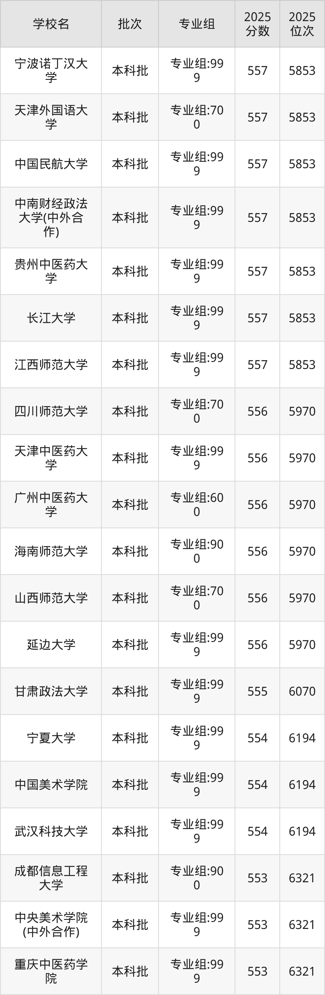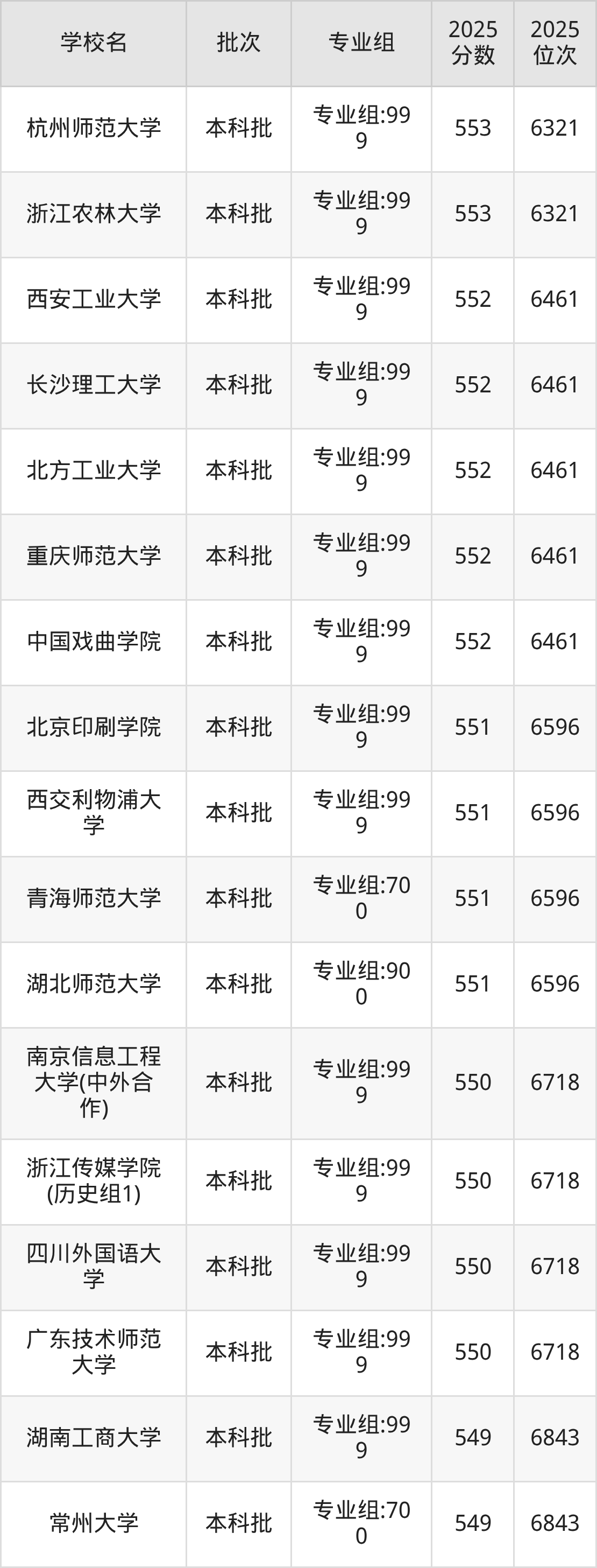 这些都是2026年高考历史类6322名~6461名考生可以报考的大学,更多学校名单如下表所示: