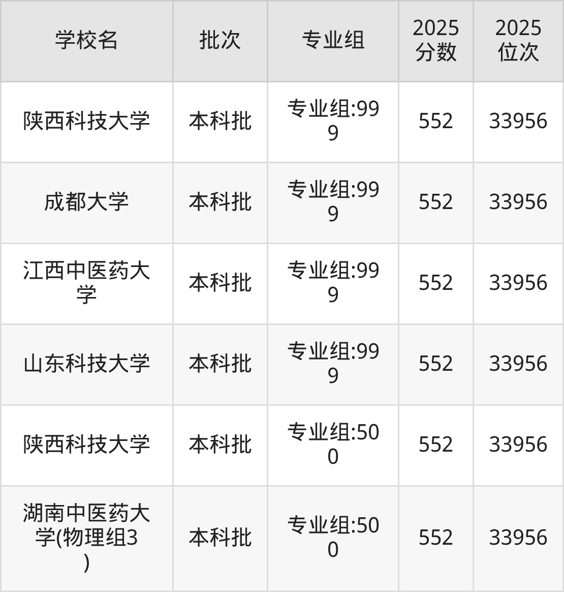 2025年福建高考物理类552分(33406名~33956名)能上的大学有成都大学专业组:999、湖南中医药大学(物理组3)专业组:500、江西中医药大学专业组:999、南宁师范大学专业组:900等。