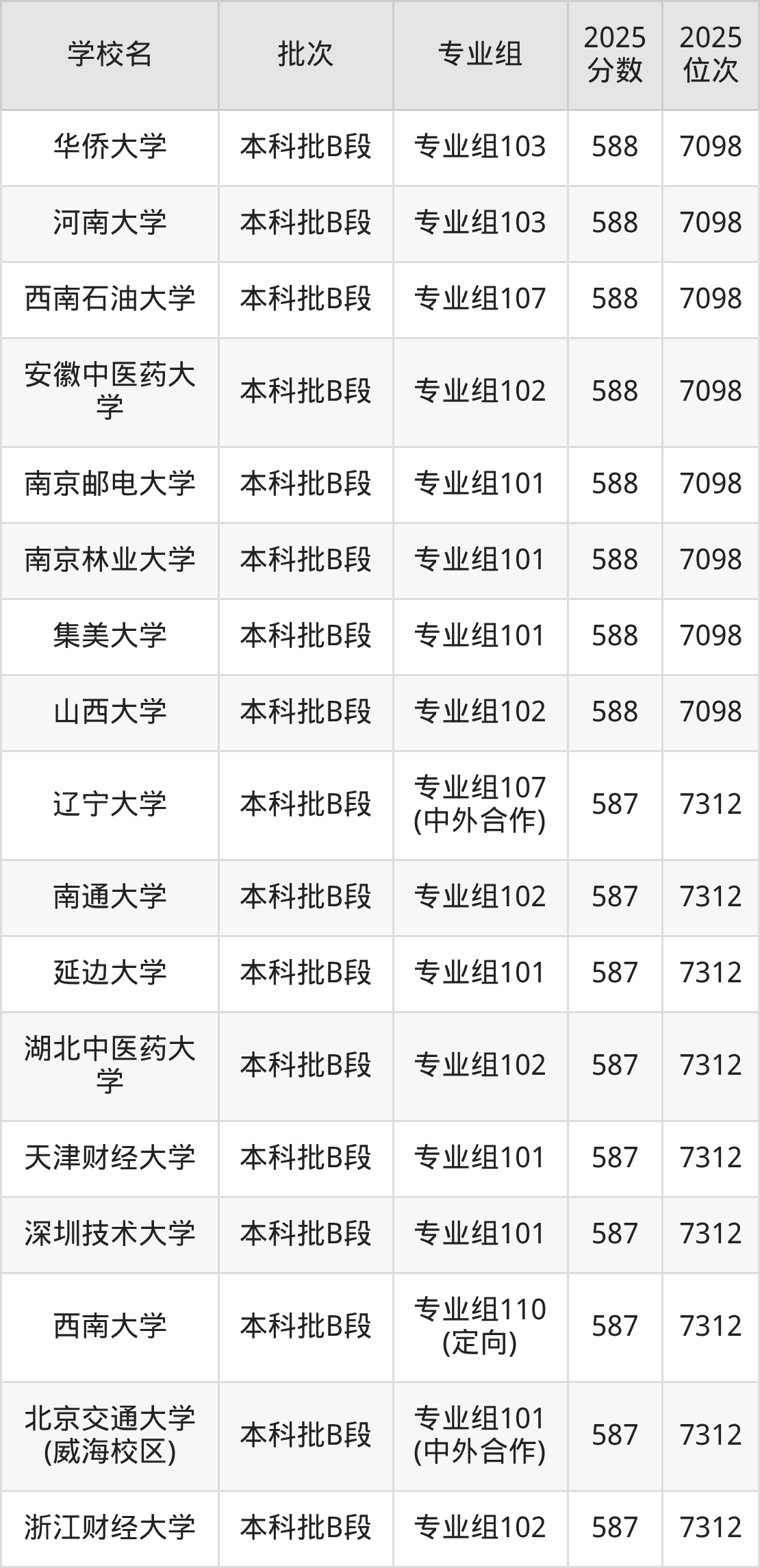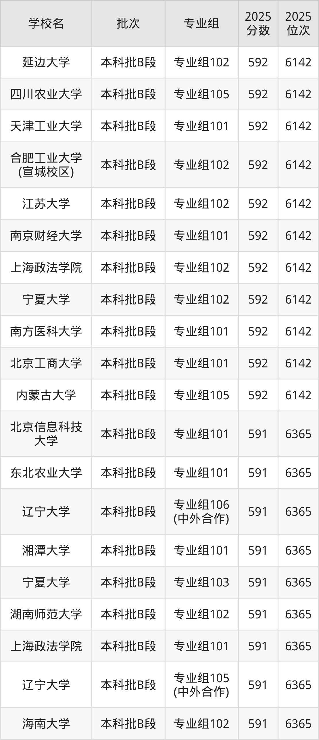 这些都是2026年高考历史类6592名~6830名考生可以报考的大学,更多学校名单如下表所示: