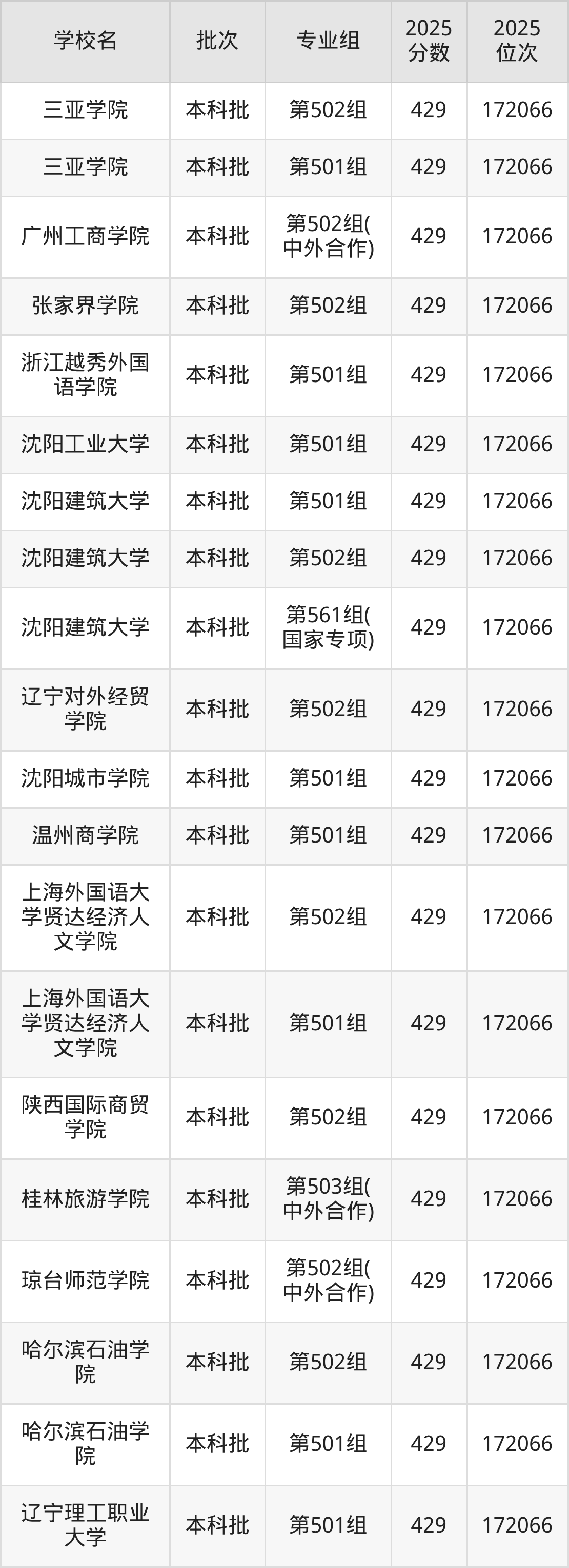 另外录取位次低于该区间(较稳妥)的有武汉城市职业学院第502组(173223名)、上海工艺美术职业学院第501组(173269名)等;录取位次高于该区间(可冲)的有黑龙江财经学院第501组(172066名)、福州外语外贸学院第501组(172066名)等。