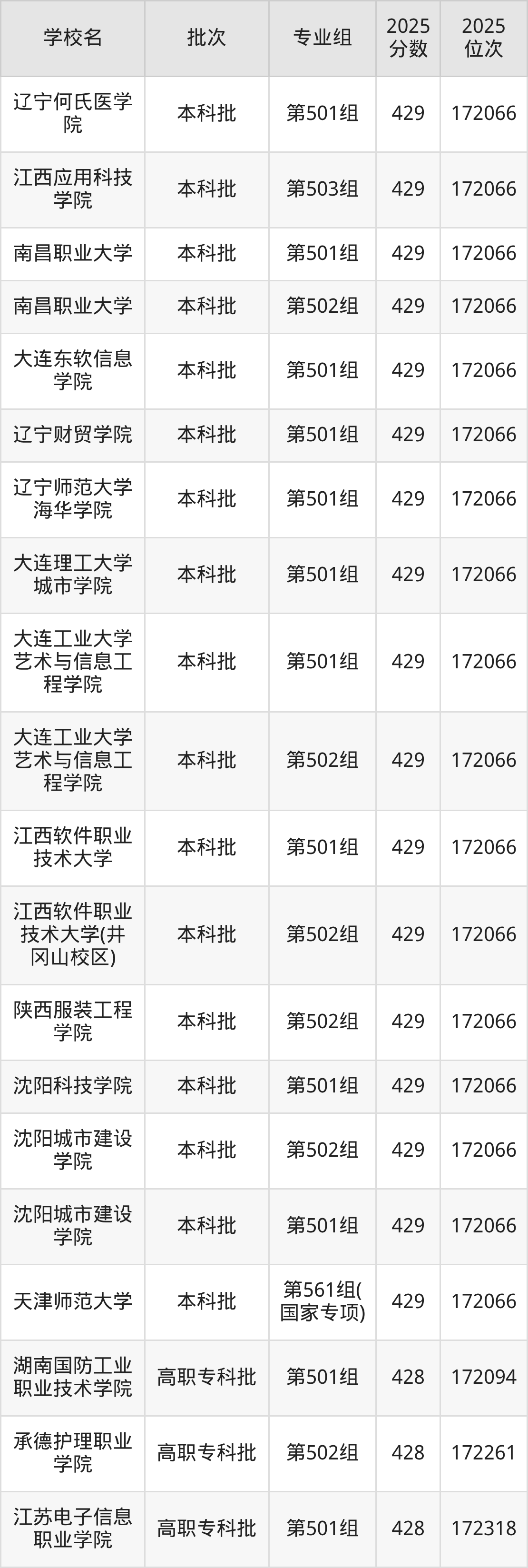 2025年江西高考历史类428分(84613名~85265名)能上的大学有武汉工商学院第102组、皖西卫生职业学院第101组、湖北城市建设职业技术学院第101组。