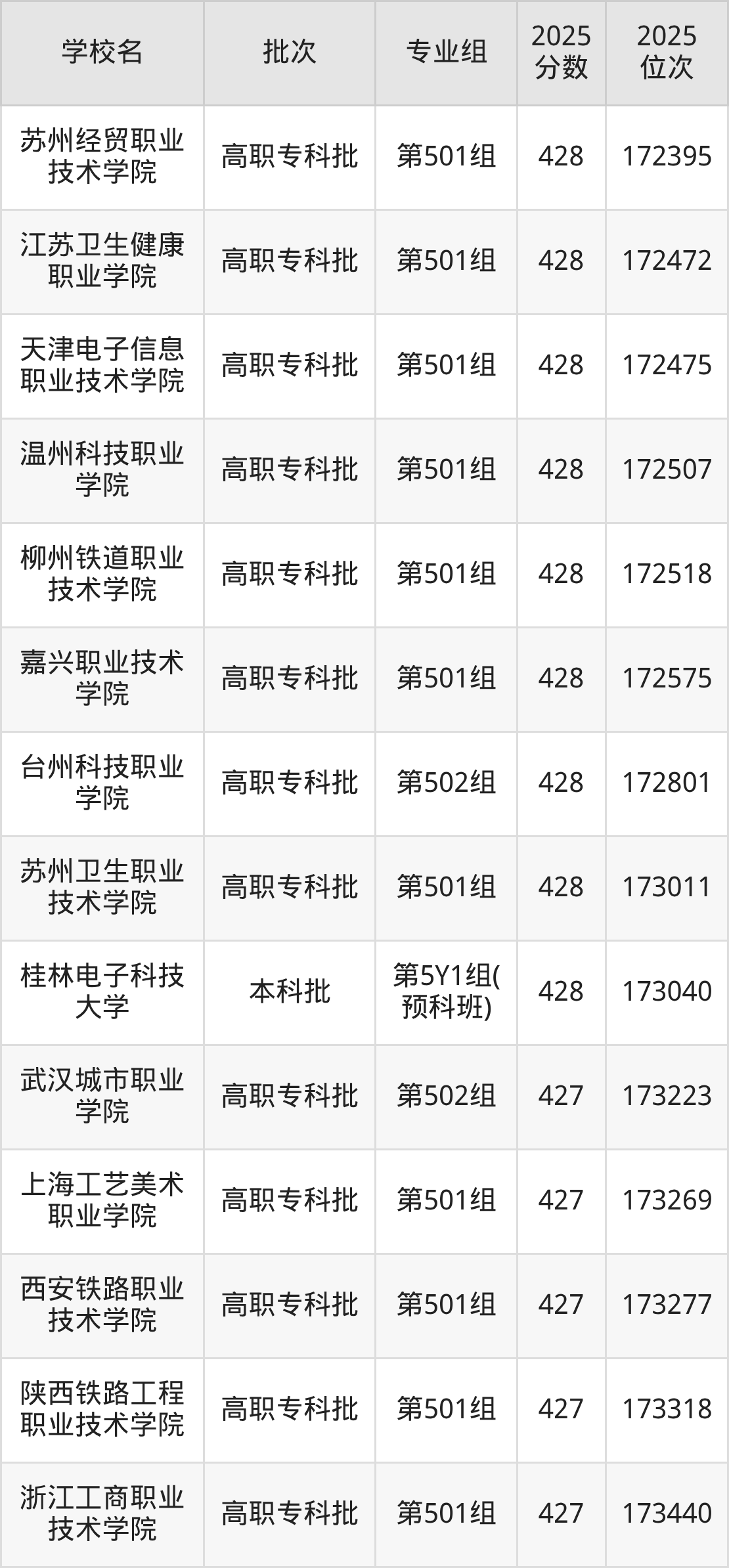 2025年江西高考物理类428分(172067名~173043名)能上的大学有桂林电子科技大学第5Y1组(预科班)、江苏卫生健康职业学院第501组、天津电子信息职业技术学院第501组、苏州卫生职业技术学院第501组等。