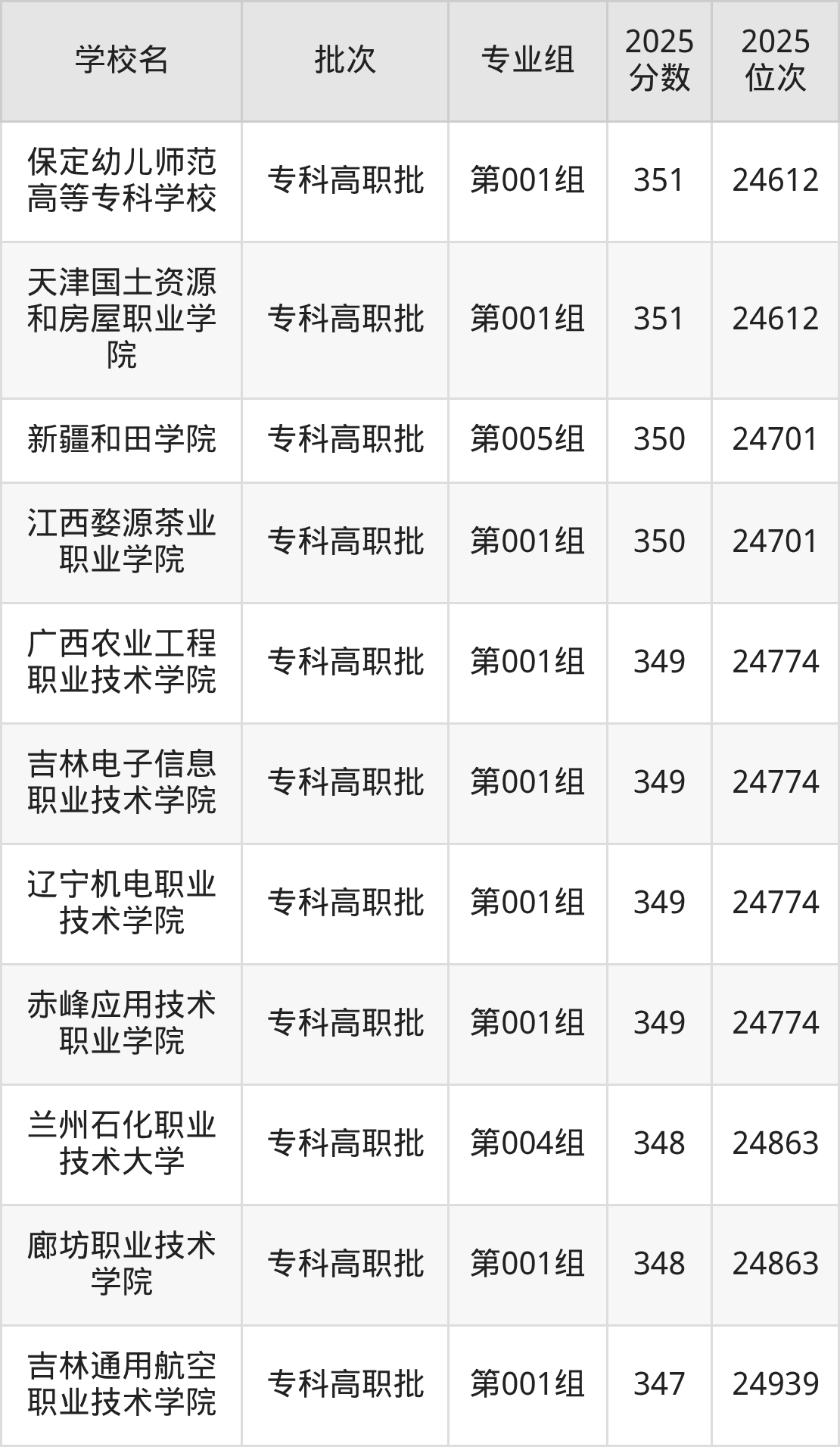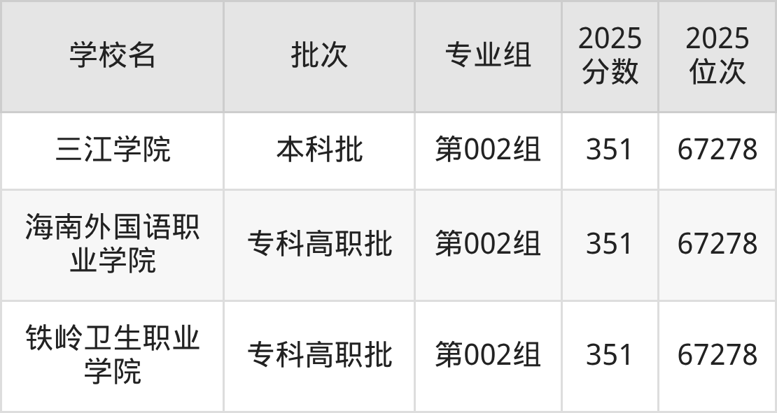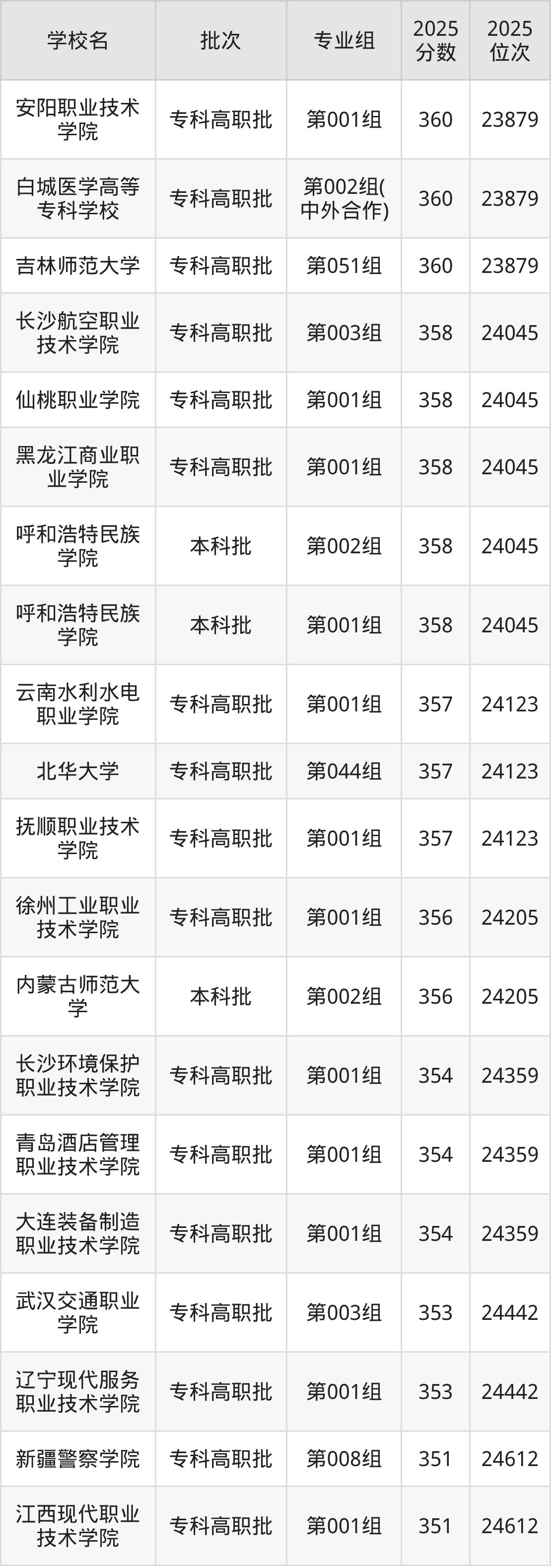 2025年吉林高考历史类353分(24360名~24442名)能上的大学有辽宁现代服务职业技术学院第001组、武汉交通职业学院第003组。