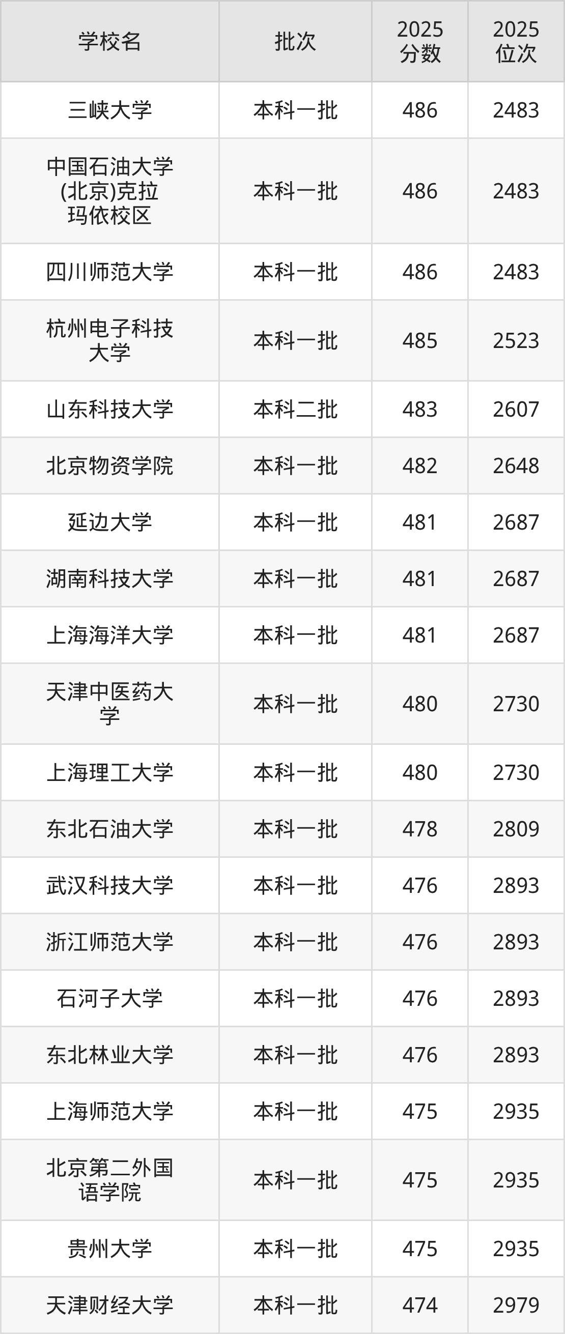 这些都是2026年高考文科2980名~3016名考生可以报考的大学,更多学校名单如下表所示: