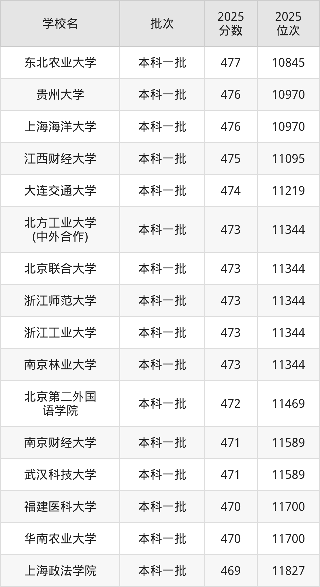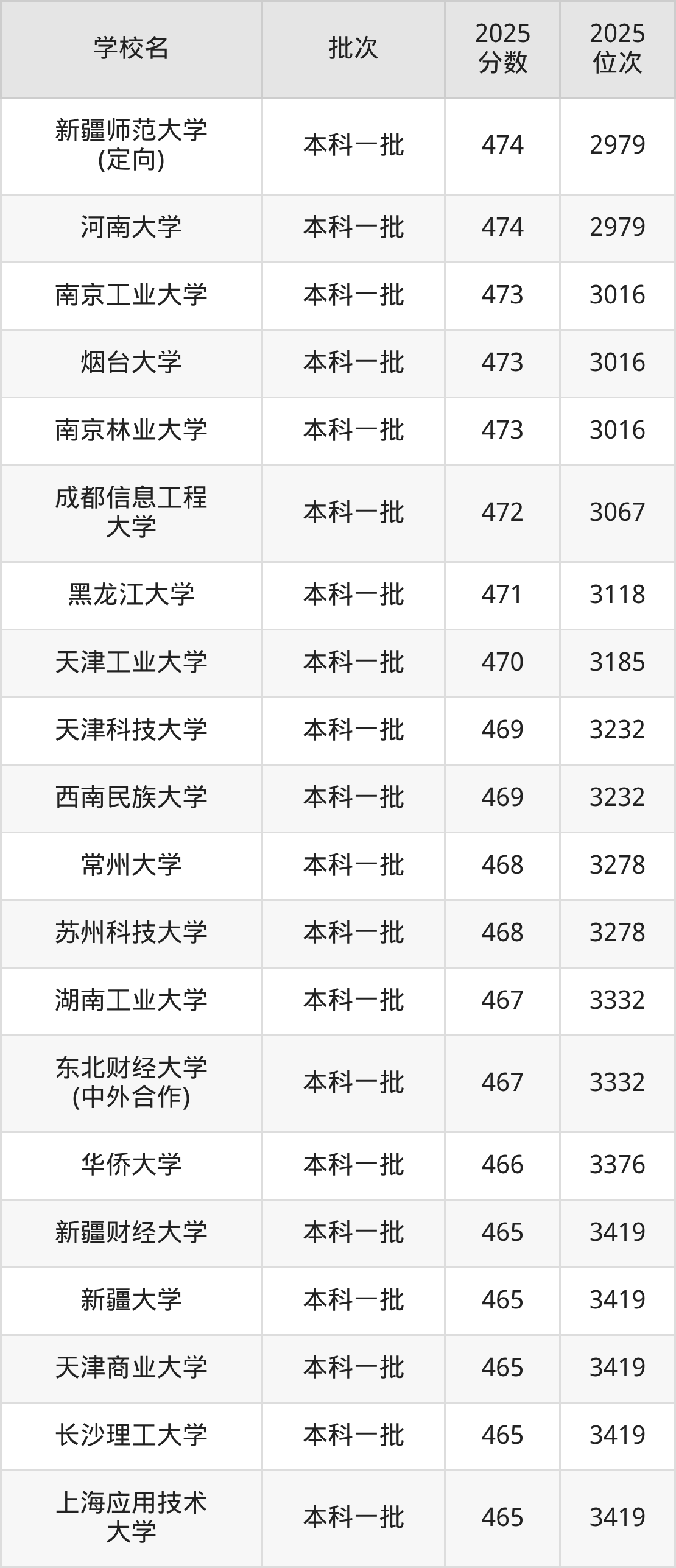 2025年新疆高考理科473分(11220名~11344名)能上的大学有南京林业大学、浙江工业大学、浙江师范大学、北京联合大学等。