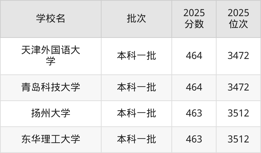 这些都是2026年高考理科11220名~11344名考生可以报考的大学,更多学校名单如下表所示: