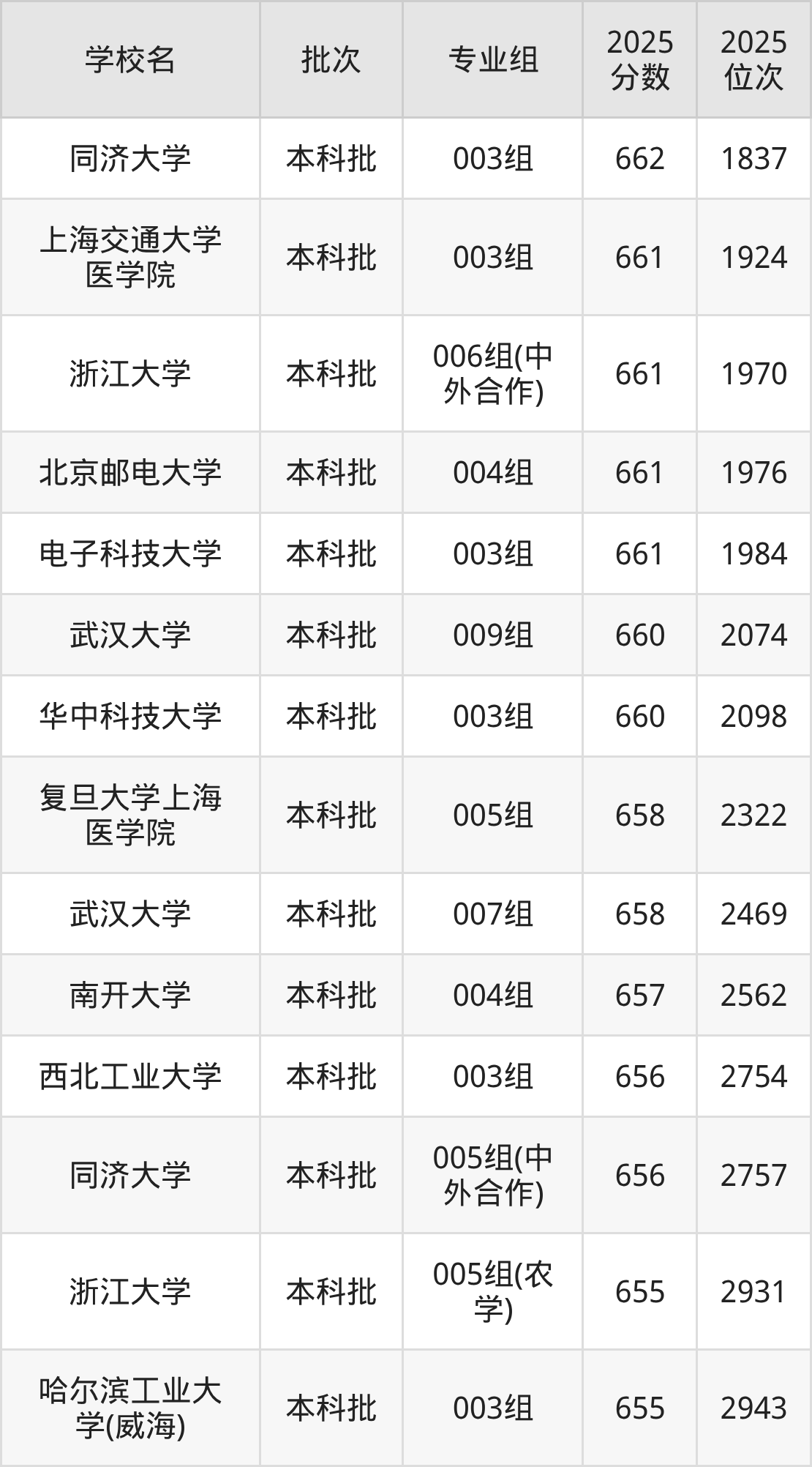 2025年安徽高考物理类658分(2308名~2501名)能上的大学有复旦大学上海医学院005组、武汉大学007组。
