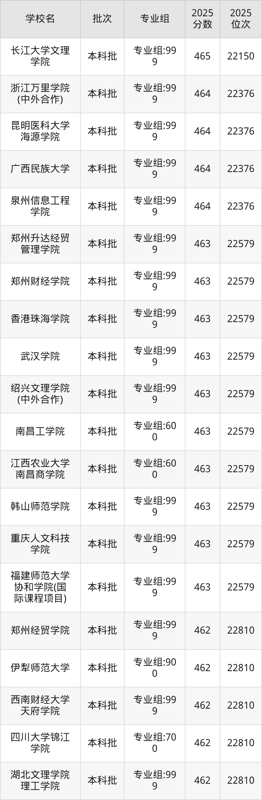 这些都是2026年高考历史类22151名~22376名考生可以报考的大学,更多学校名单如下表所示: