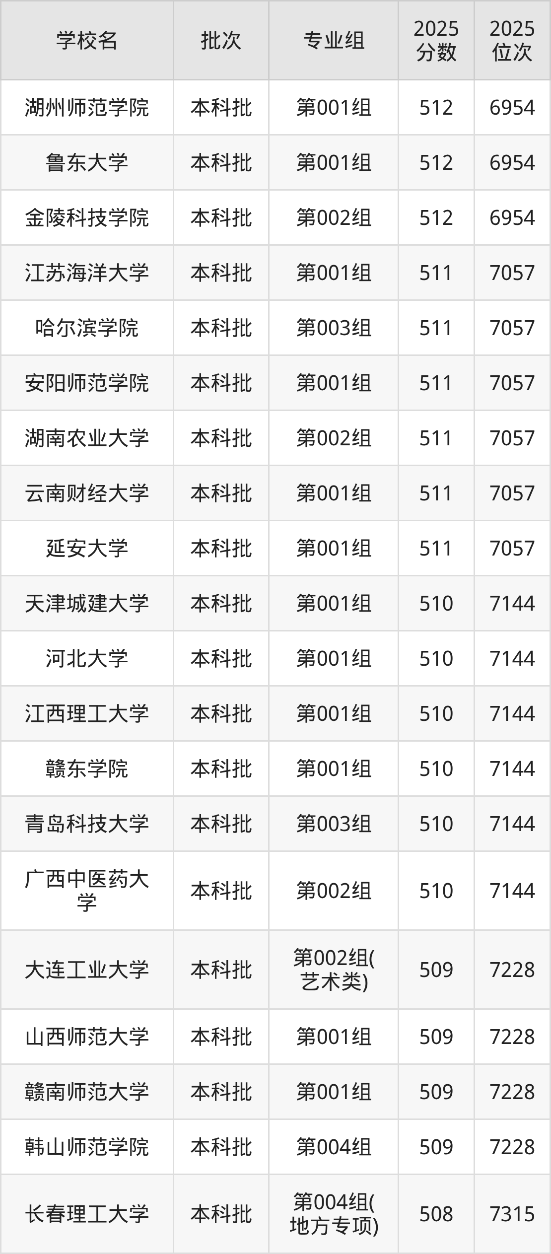 这些都是2026年高考历史类7409名~7504名考生可以报考的大学,更多学校名单如下表所示: