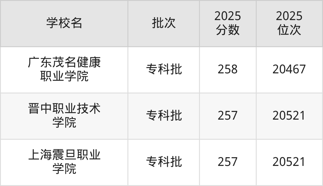 这些都是2026年高考文科19963名~20041名考生可以报考的大学,更多学校名单如下表所示: