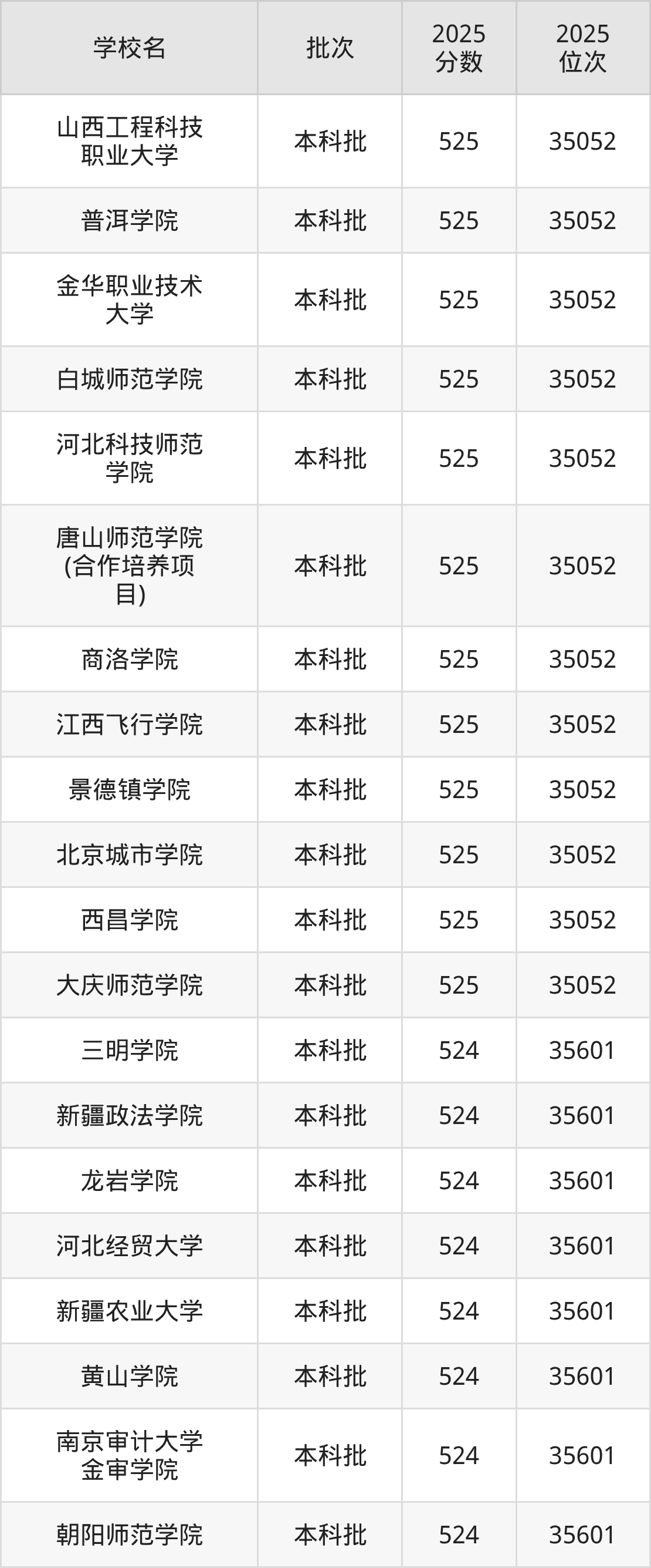 这些都是2026年高考历史类35053名~35601名考生可以报考的大学,更多学校名单如下表所示: