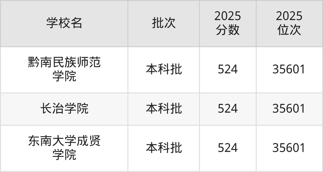 2025年河北高考历史类524分(35053名~35601名)能上的大学有朝阳师范学院、黔南民族师范学院、三明学院、东南大学成贤学院等。