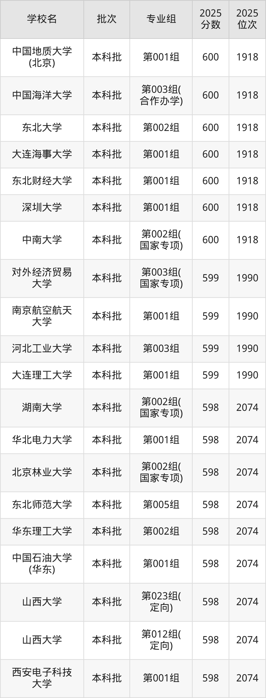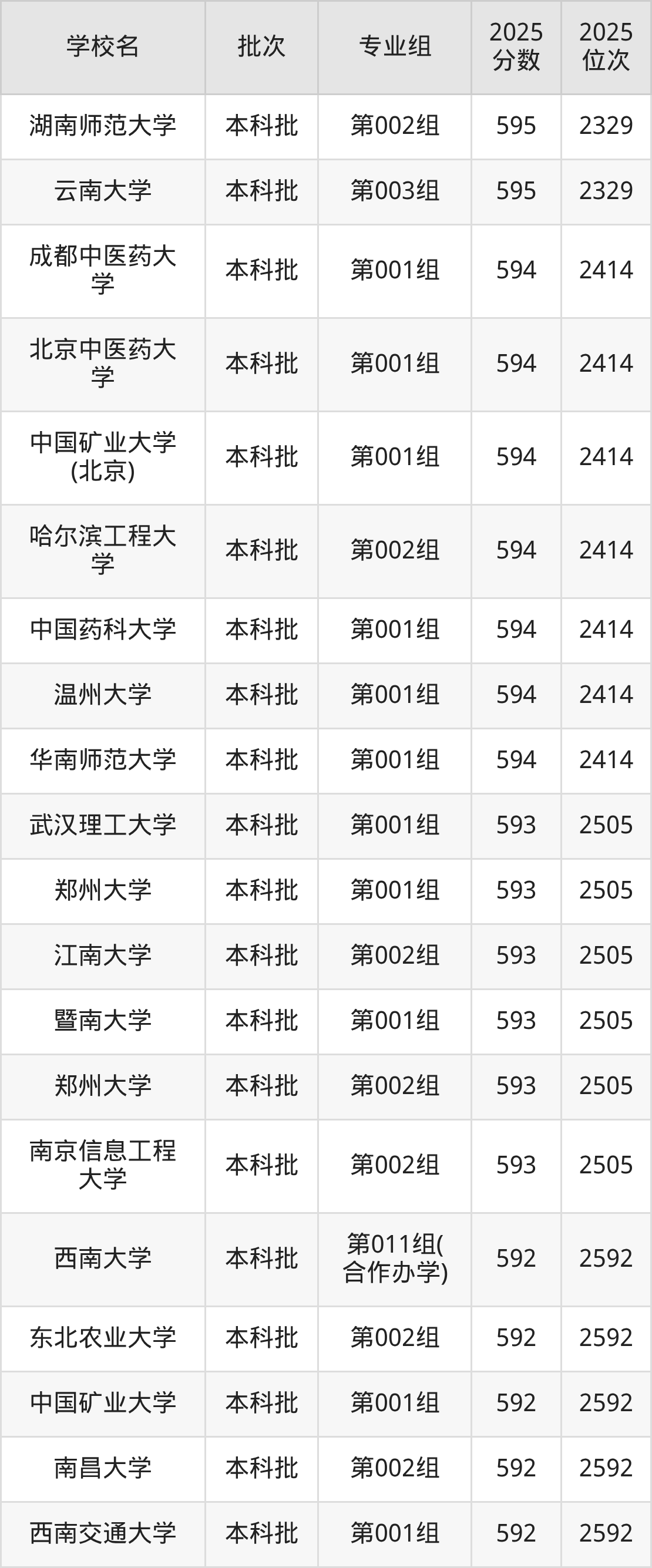 另外录取位次低于该区间(较稳妥)的有湖南师范大学第002组(2329名)、中国农业大学第002组(2329名)等;录取位次高于该区间(可冲)的有西南交通大学第002组(2164名)、中国地质大学(武汉)第001组(2164名)等。