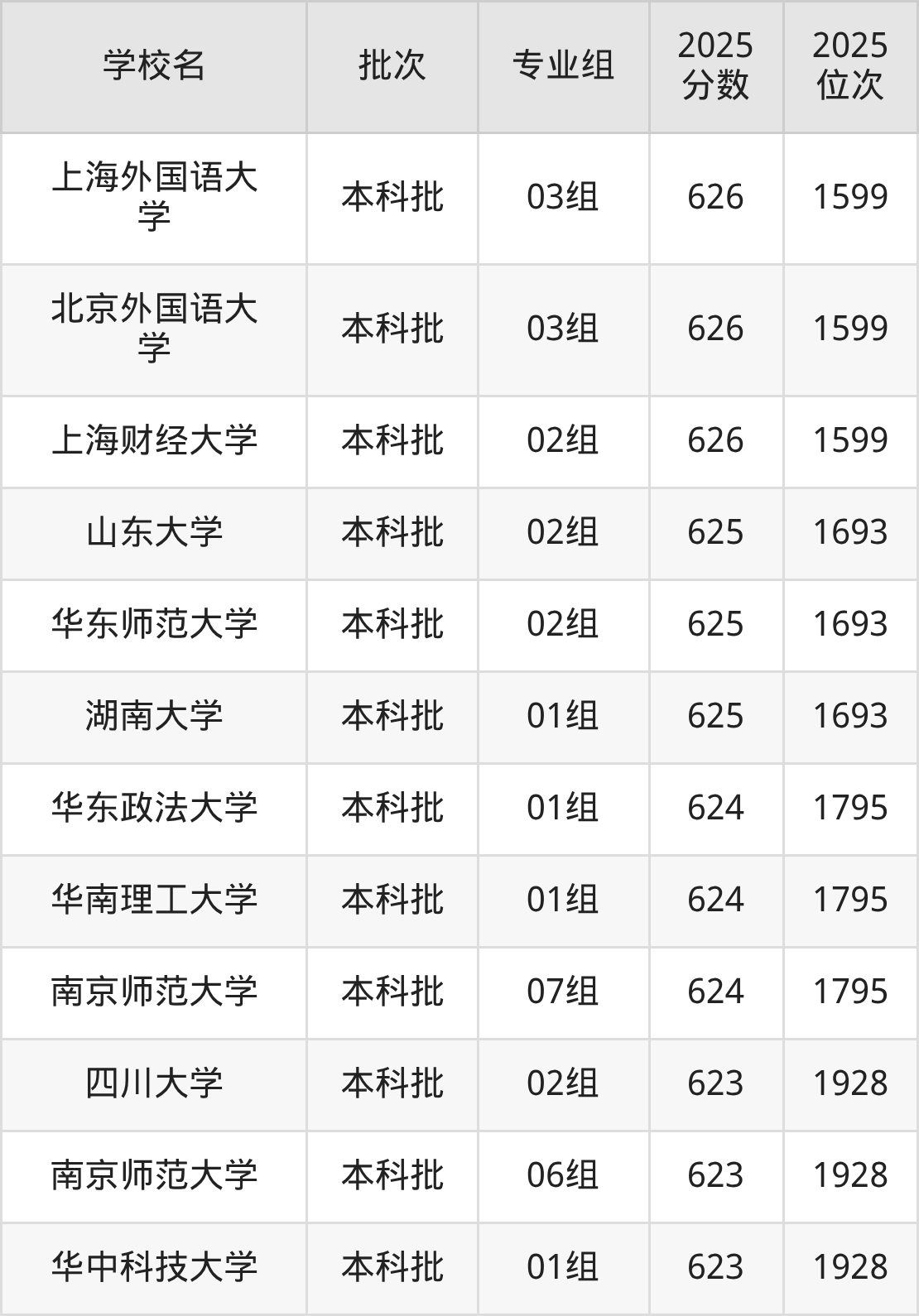 这些都是2026年高考历史类1417名~1489名考生可以报考的大学,更多学校名单如下表所示: