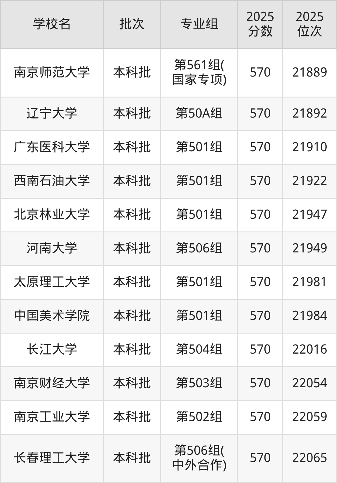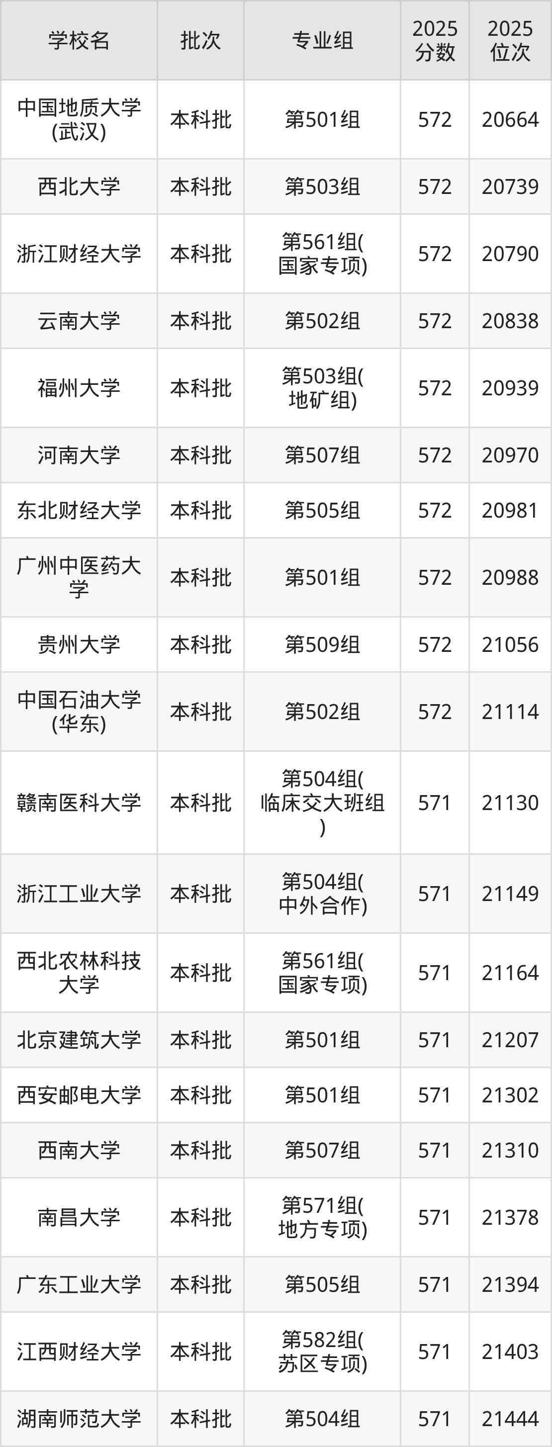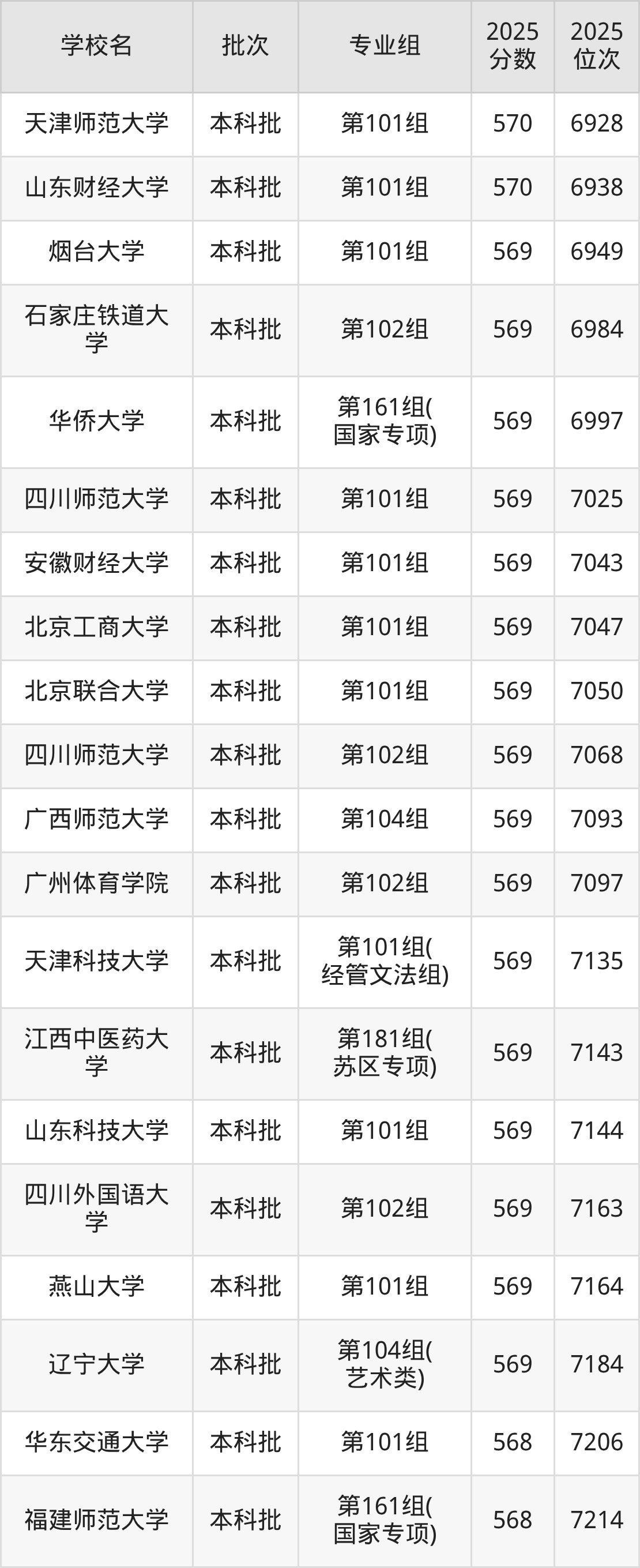 这些都是2026年高考历史类6520名~6732名考生可以报考的大学,更多学校名单如下表所示: