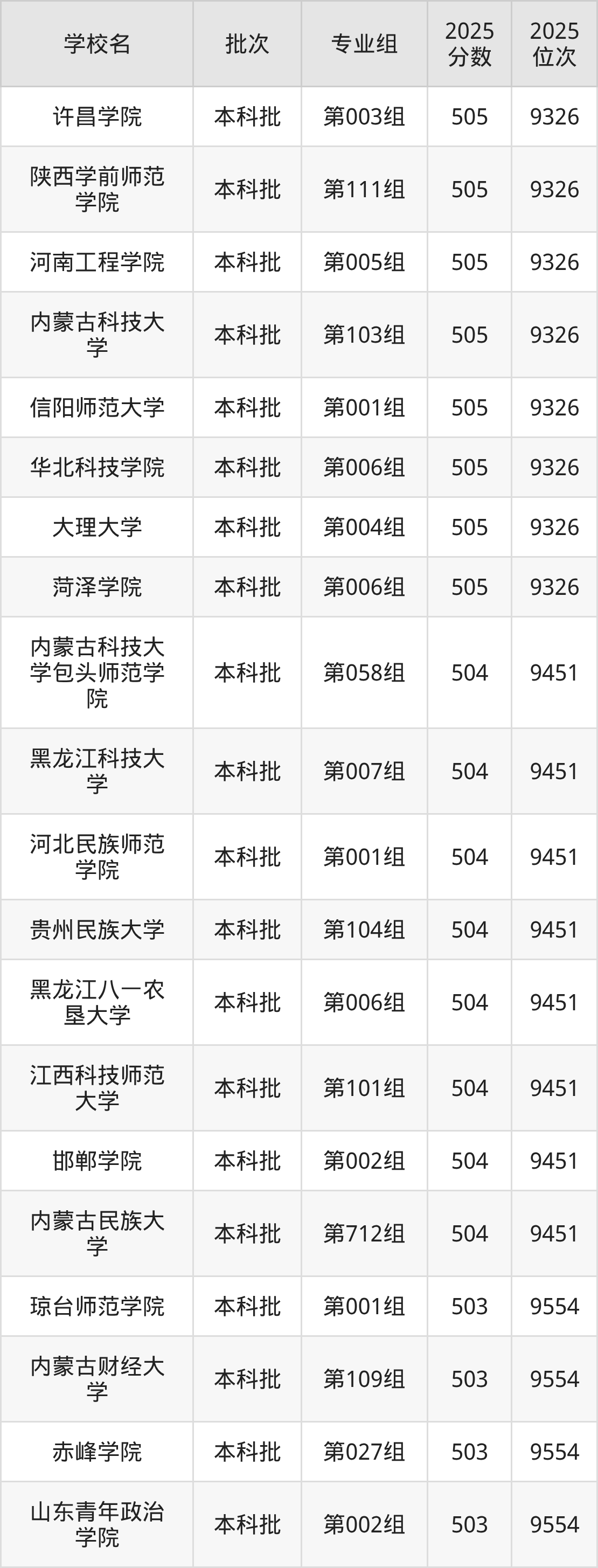 这些都是2026年高考历史类9785名~9886名考生可以报考的大学,更多学校名单如下表所示: