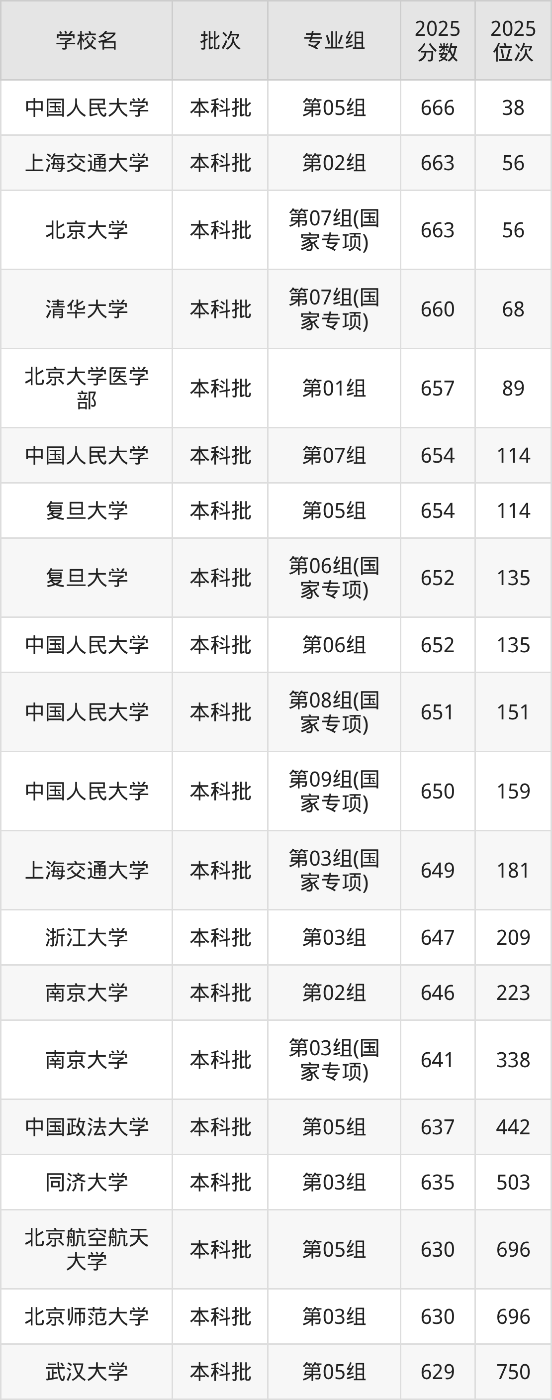 2025年湖北高考历史类633分(536名~568名)录取位次低于该区间(较稳妥)的有北京航空航天大学第05组(696名)、北京师范大学第03组(696名)等;录取位次高于该区间(可冲)的有同济大学第03组(503名)、中国政法大学第05组(442名)等。