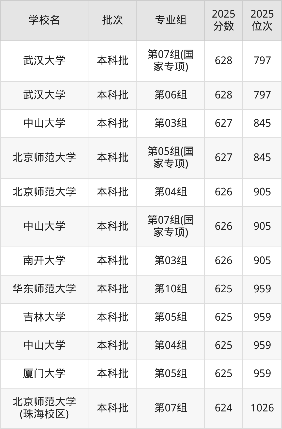 这些都是2026年高考历史类536名~568名考生可以报考的大学,更多学校名单如下表所示: