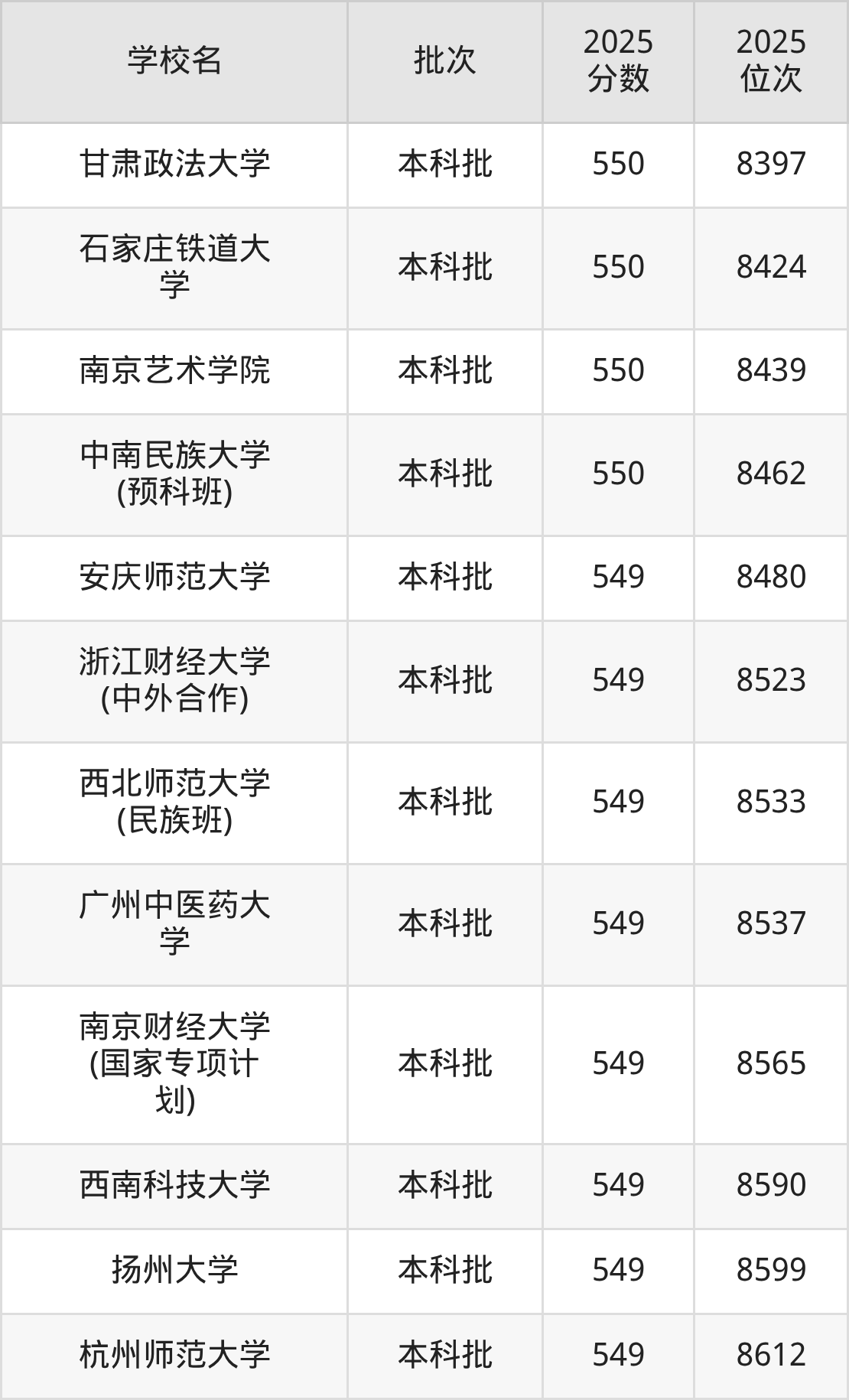 这些都是2026年高考历史类7952名~8116名考生可以报考的大学,更多学校名单如下表所示: