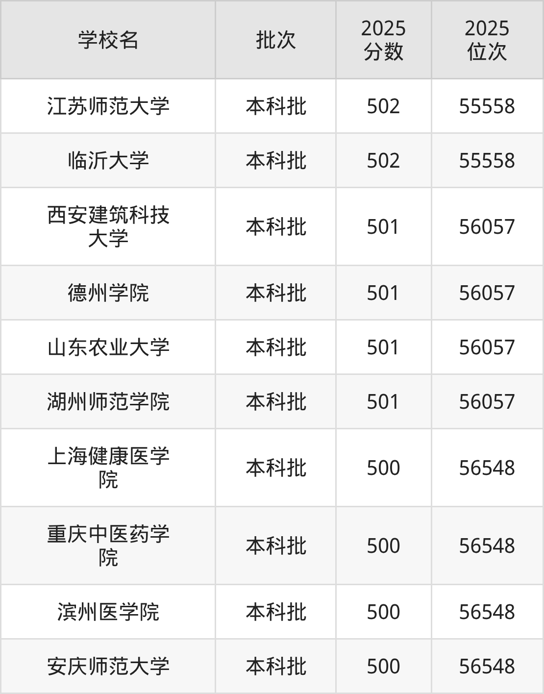 这些都是2026年高考物理类55559名~56057名考生可以报考的大学,更多学校名单如下表所示: