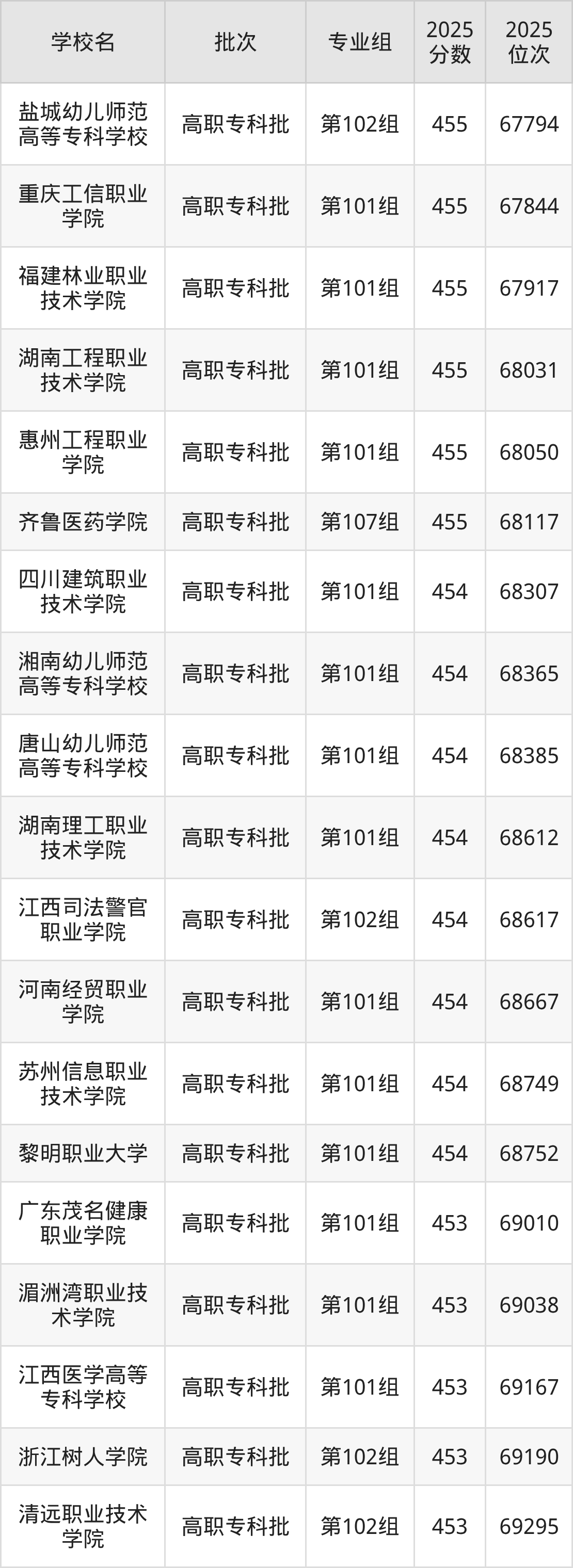 2025年江西高考历史类454分(68192名~68821名)能上的大学有唐山幼儿师范高等专科学校第101组、湘南幼儿师范高等专科学校第101组、黎明职业大学第101组、河南经贸职业学院第101组等。
