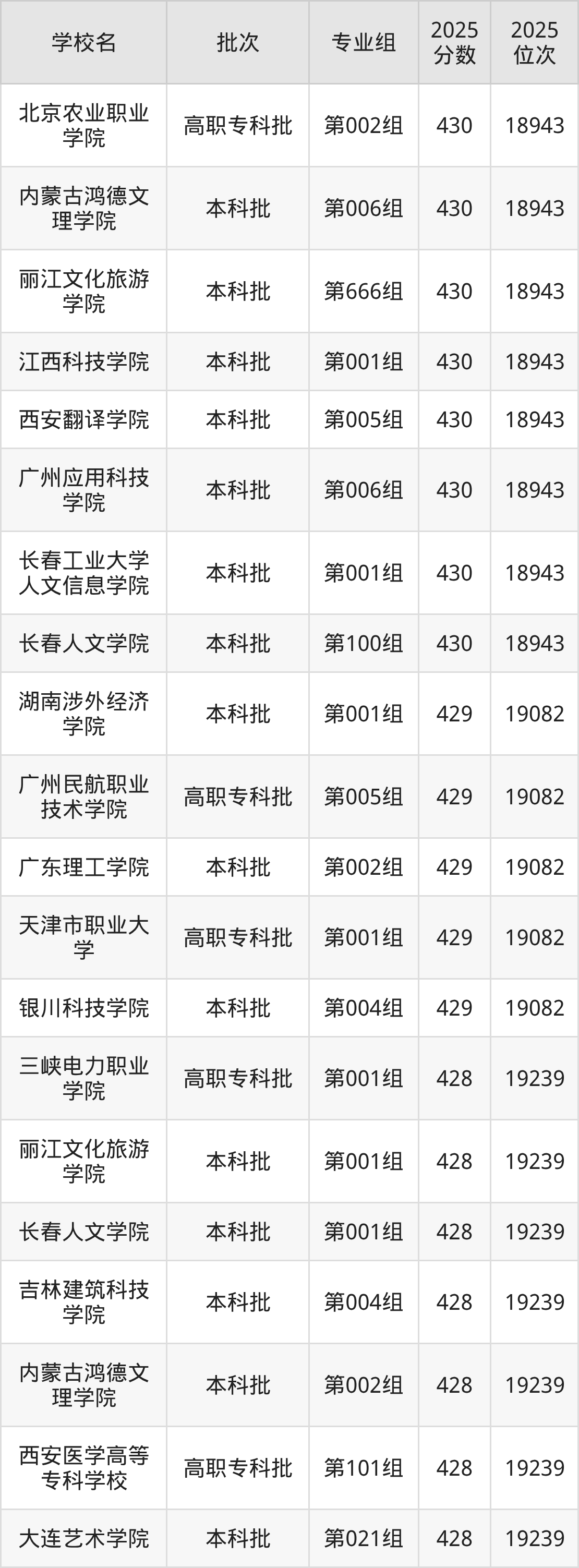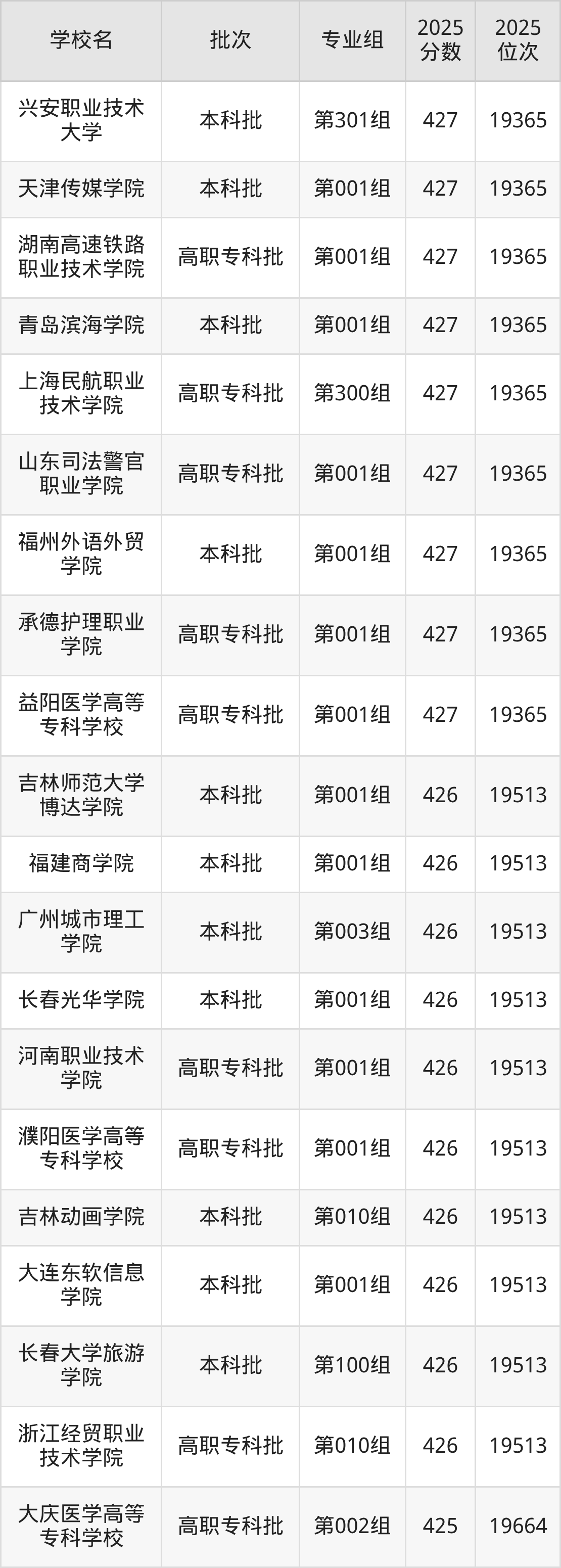 2025年内蒙古高考历史类426分(19366名~19513名)能上的大学有浙江经贸职业技术学院第010组、长春大学旅游学院第100组、大连东软信息学院第001组、吉林动画学院第010组等。