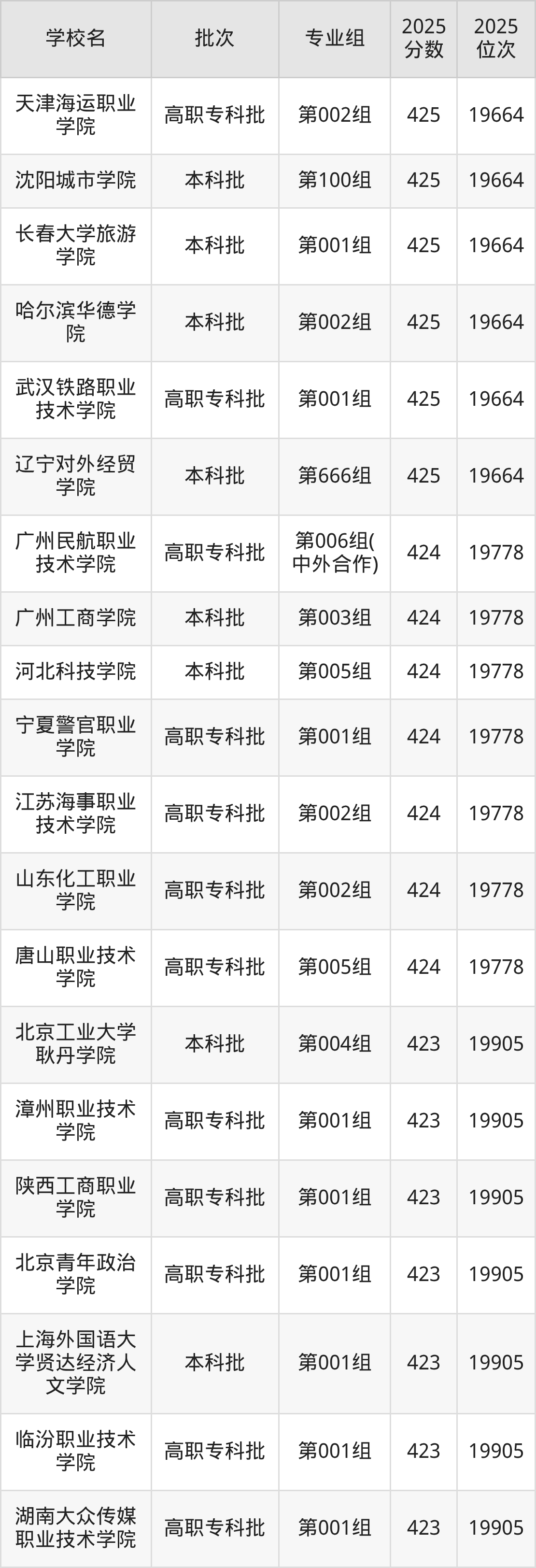 另外录取位次低于该区间(较稳妥)的有哈尔滨华德学院第002组(19664名)、天津海运职业学院第002组(19664名)等;录取位次高于该区间(可冲)的有上海民航职业技术学院第300组(19365名)、青岛滨海学院第001组(19365名)等。