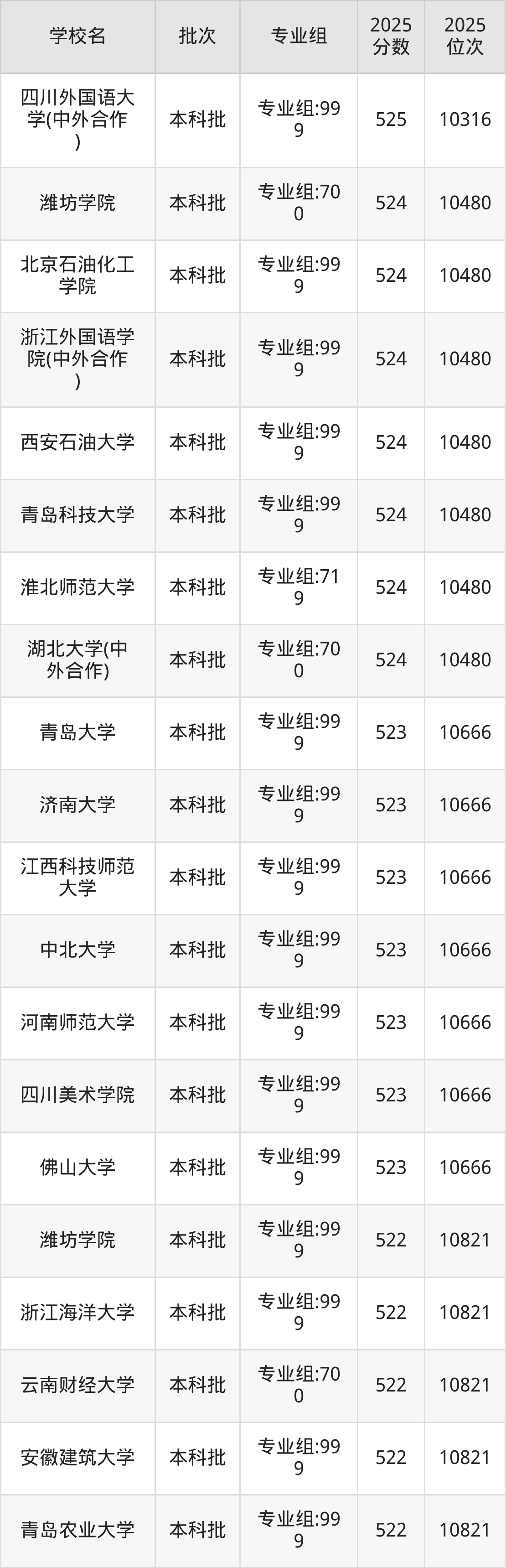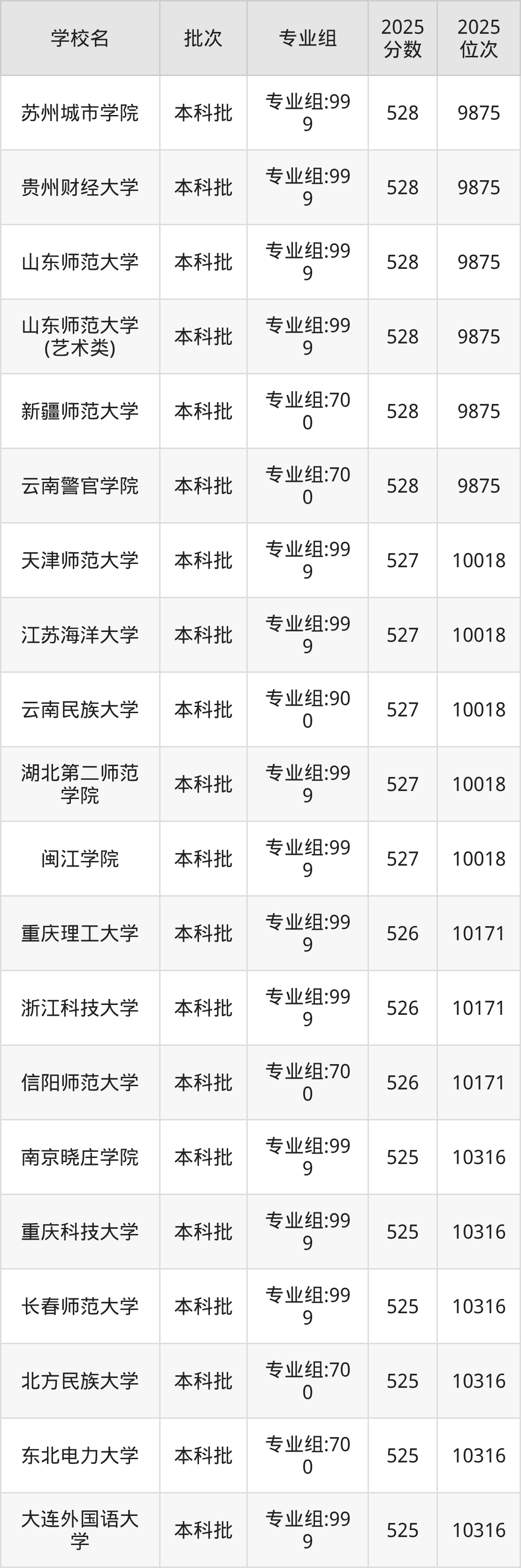 这些都是2026年高考历史类10317名~10480名考生可以报考的大学,更多学校名单如下表所示: