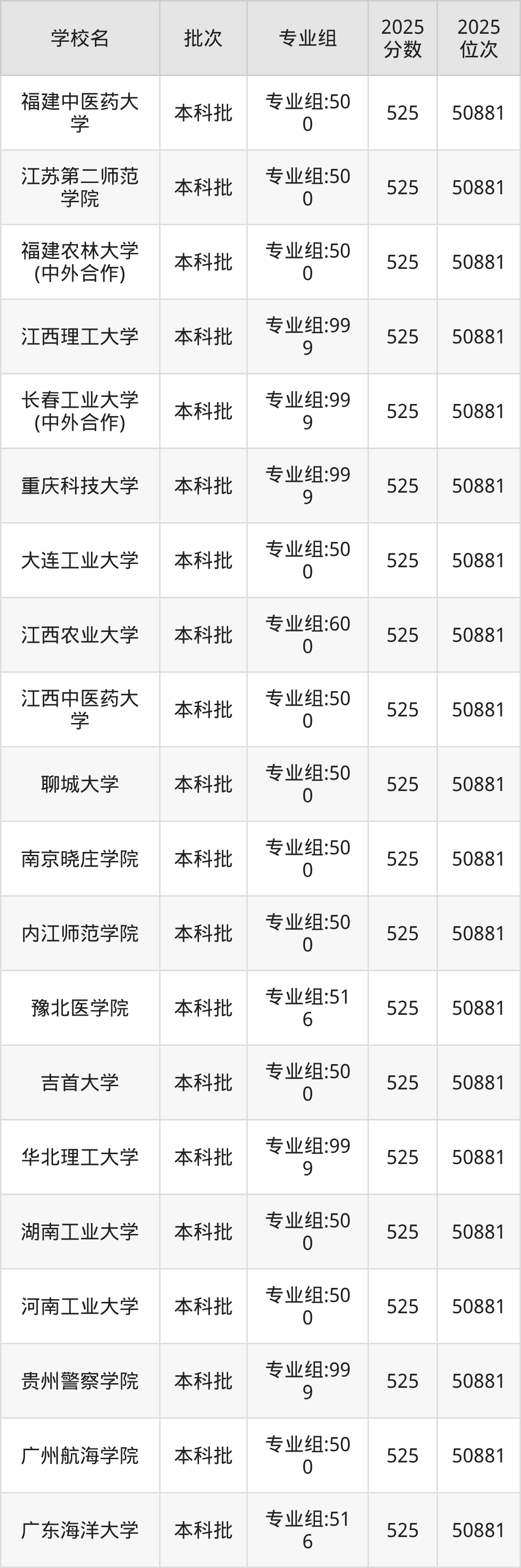 这些都是2026年高考物理类50882名~51599名考生可以报考的大学,更多学校名单如下表所示: