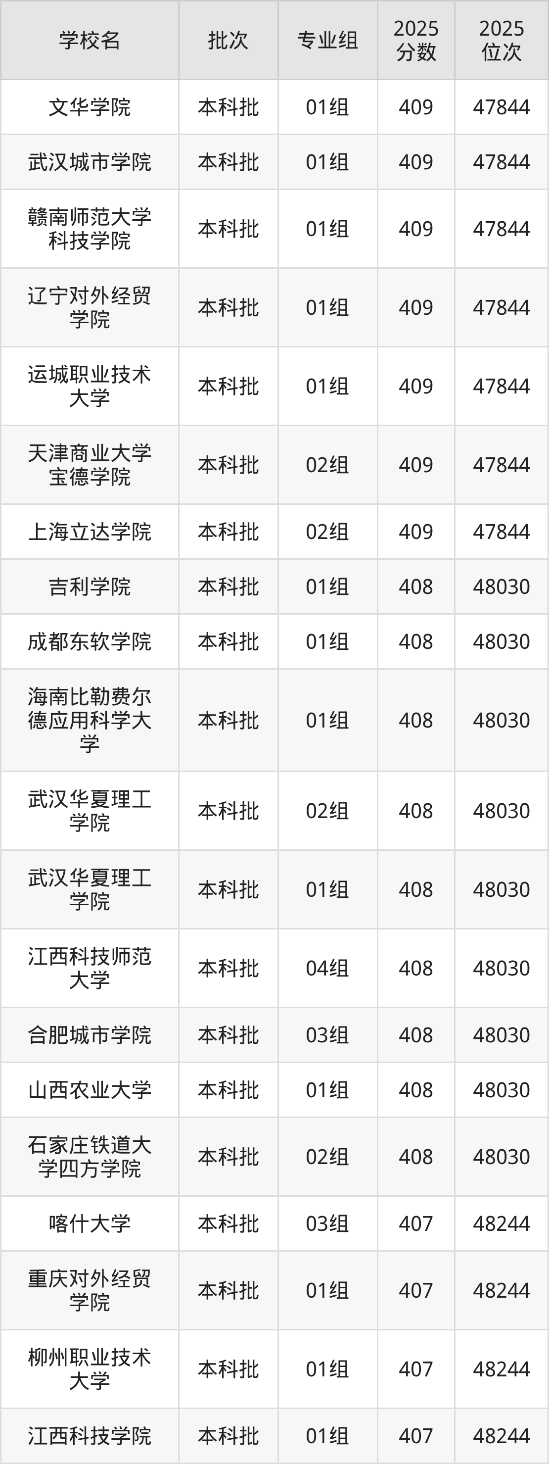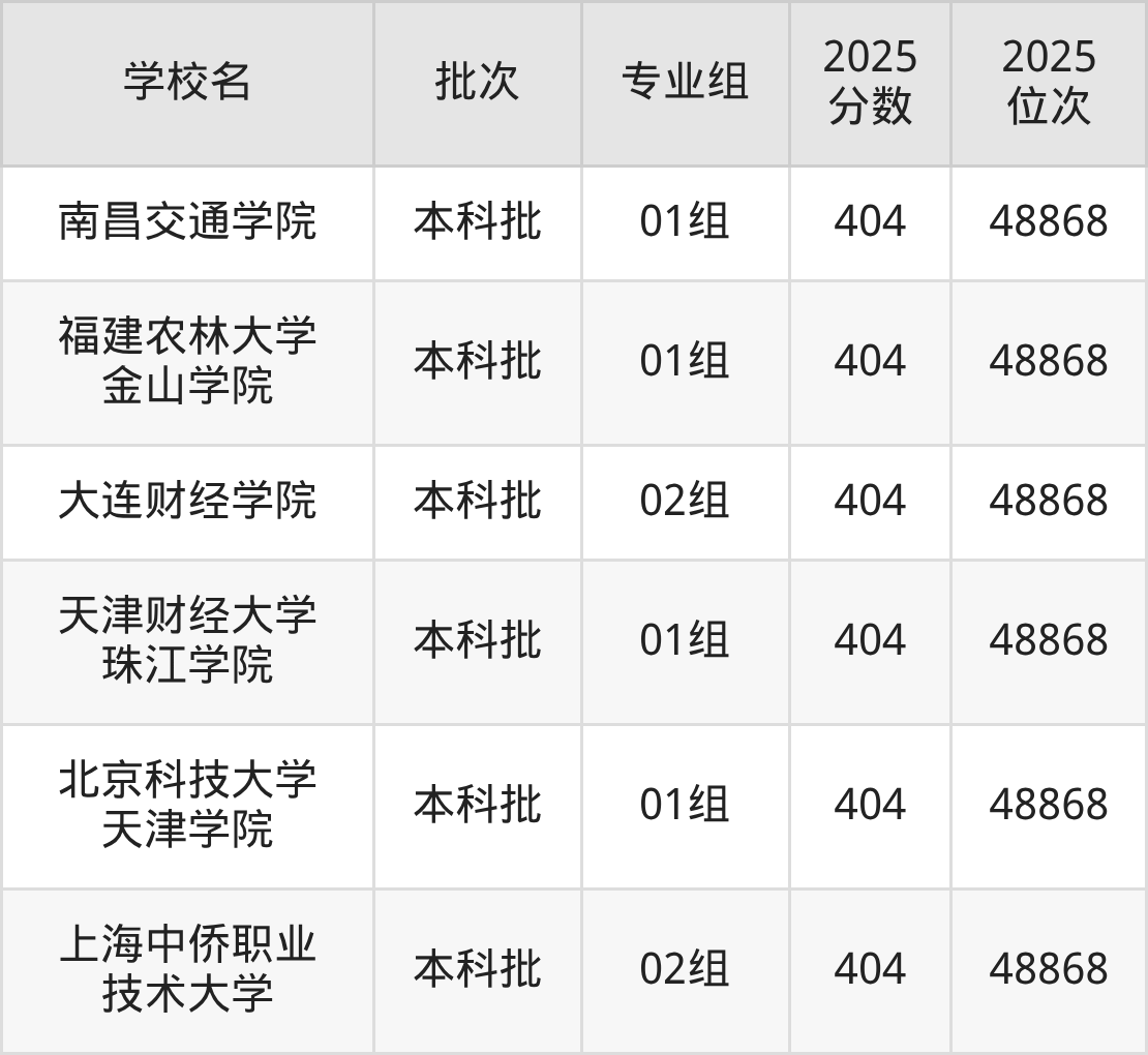这些都是2026年高考48245名~48458名考生可以报考的大学,更多学校名单如下表所示: