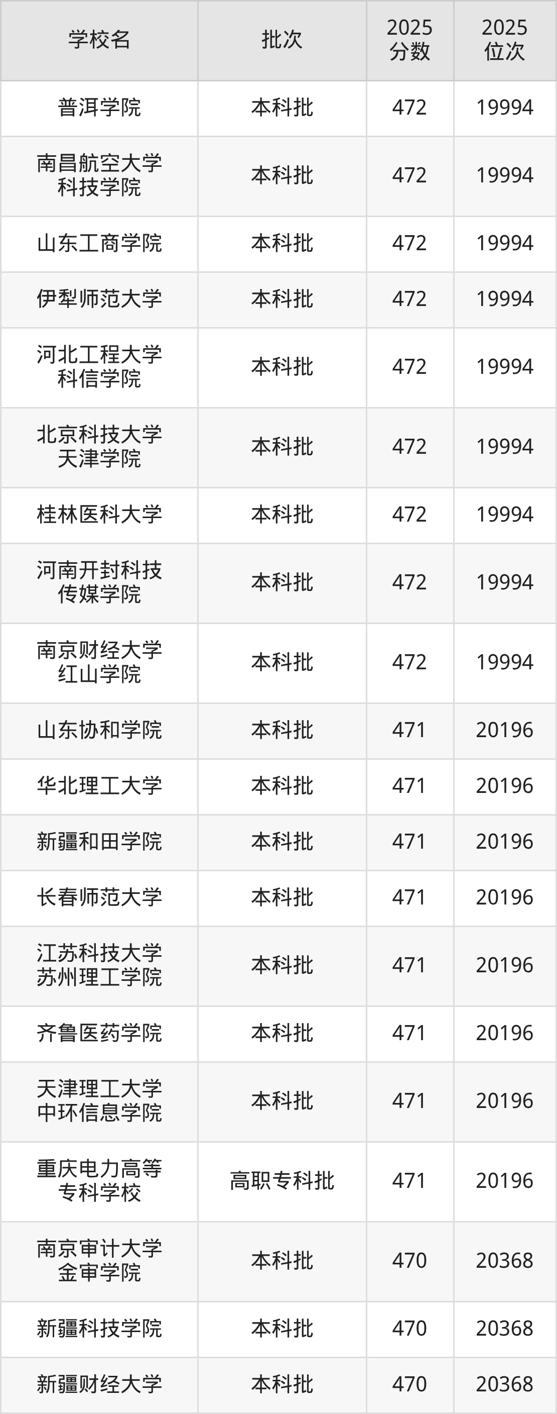 2025年辽宁高考历史类472分(19821名~19994名)能上的大学有普洱学院、河南开封科技传媒学院、南昌航空大学科技学院、河北工程大学科信学院等。