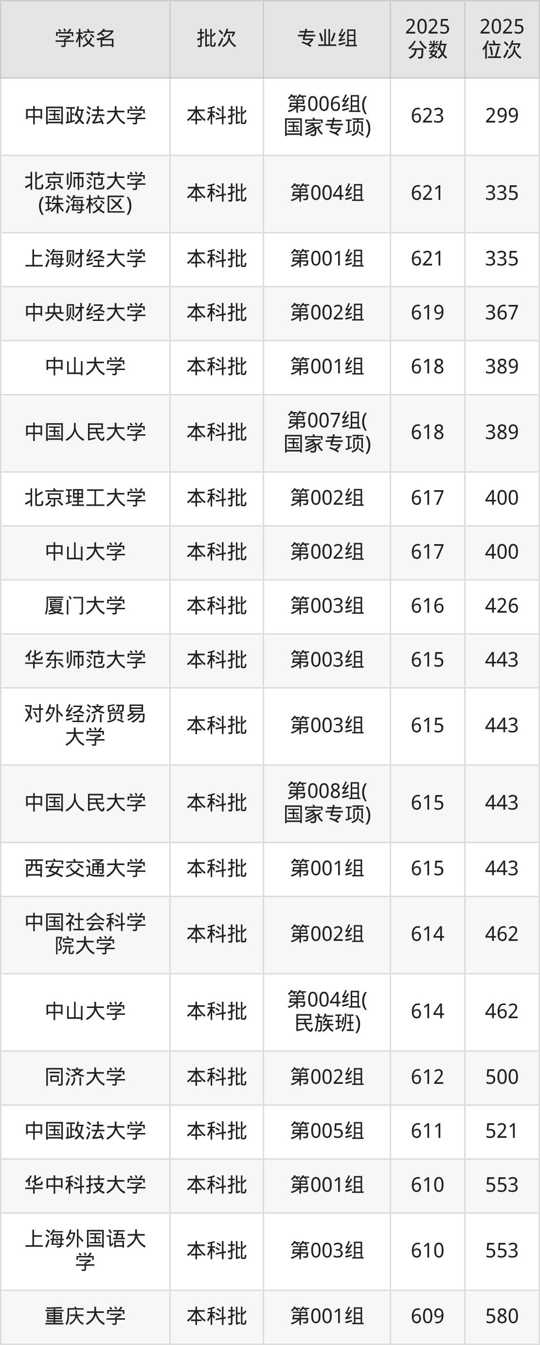 由于高考录取分数线历年波动较大,因此本文以该分数对应的位次排名为大家整理能上的大学名单。