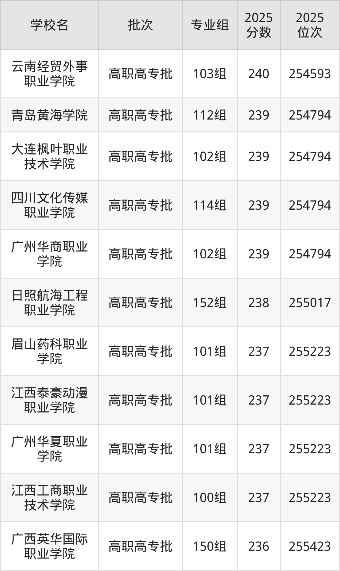 2025年广西高考物理类237分(255018名~255223名)能上的大学有江西泰豪动漫职业学院101组、广州华夏职业学院101组、江西工商职业技术学院100组、眉山药科职业学院101组。