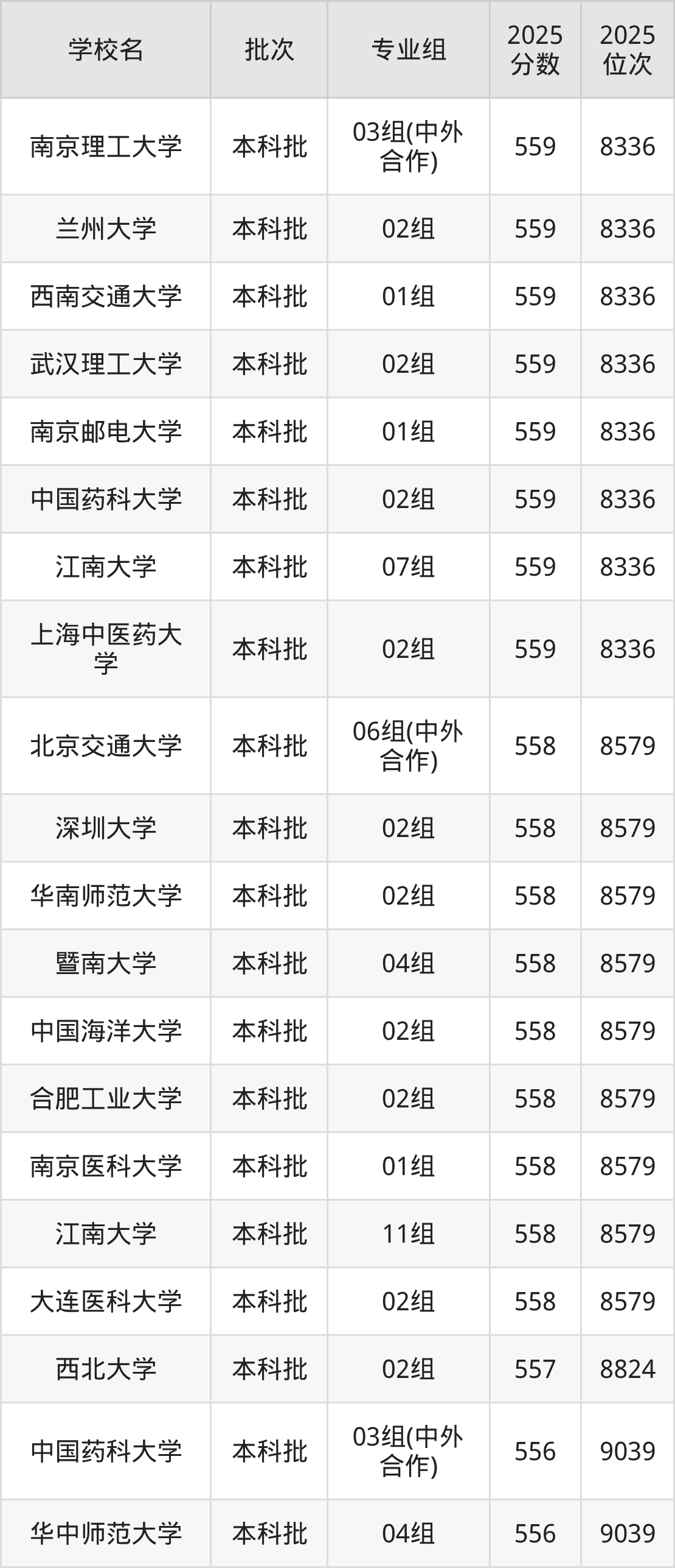 这些都是2026年高考8825名~9039名考生可以报考的大学,更多学校名单如下表所示: